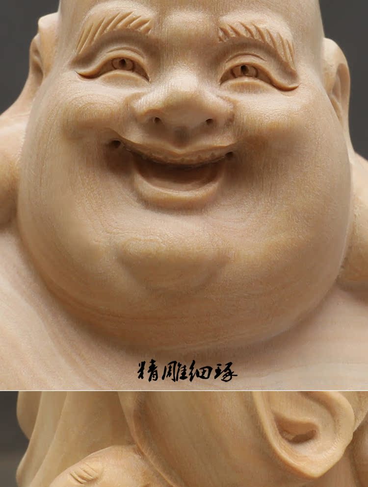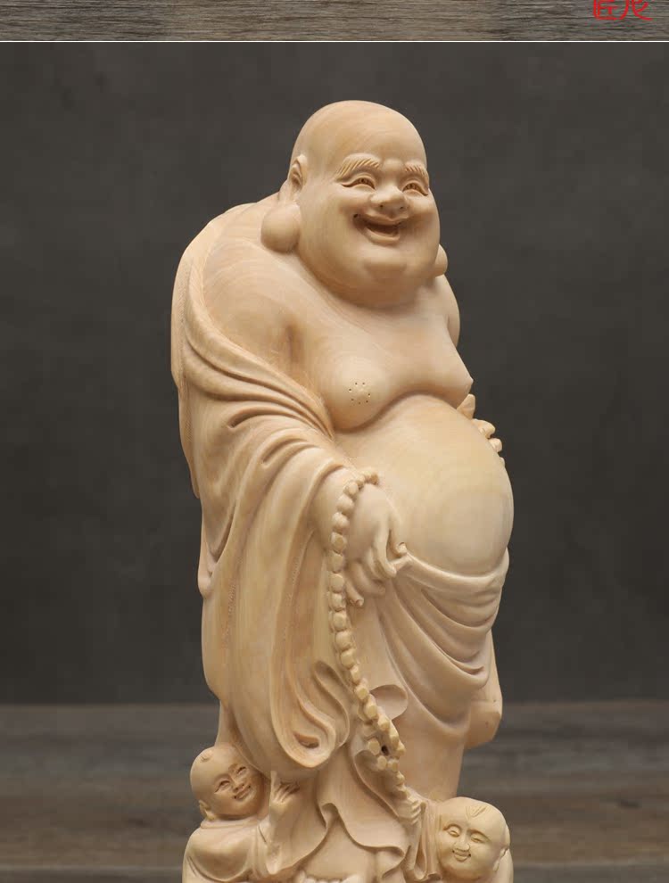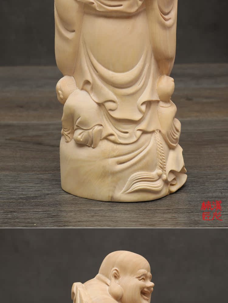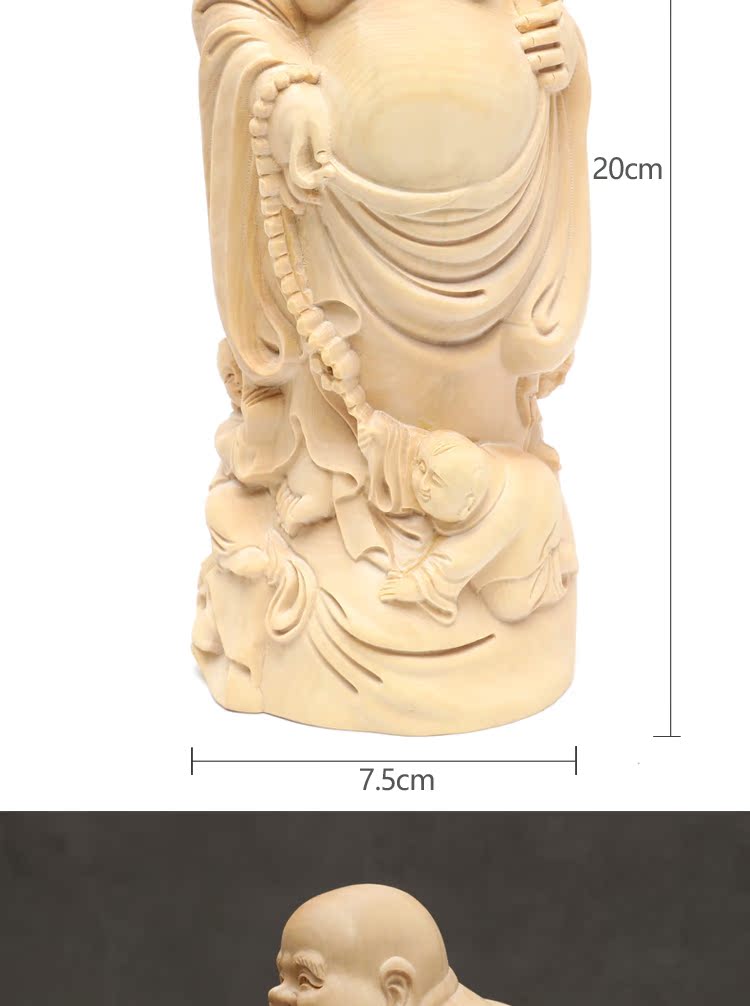 [2]楠溪匠心黃楊木雕三子彌勒擺件實木雕刻工藝品送子彌勒佛像大肚佛1入