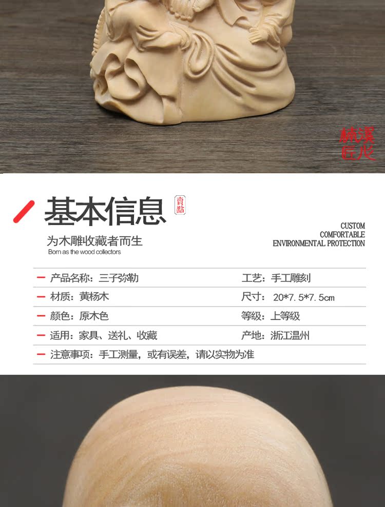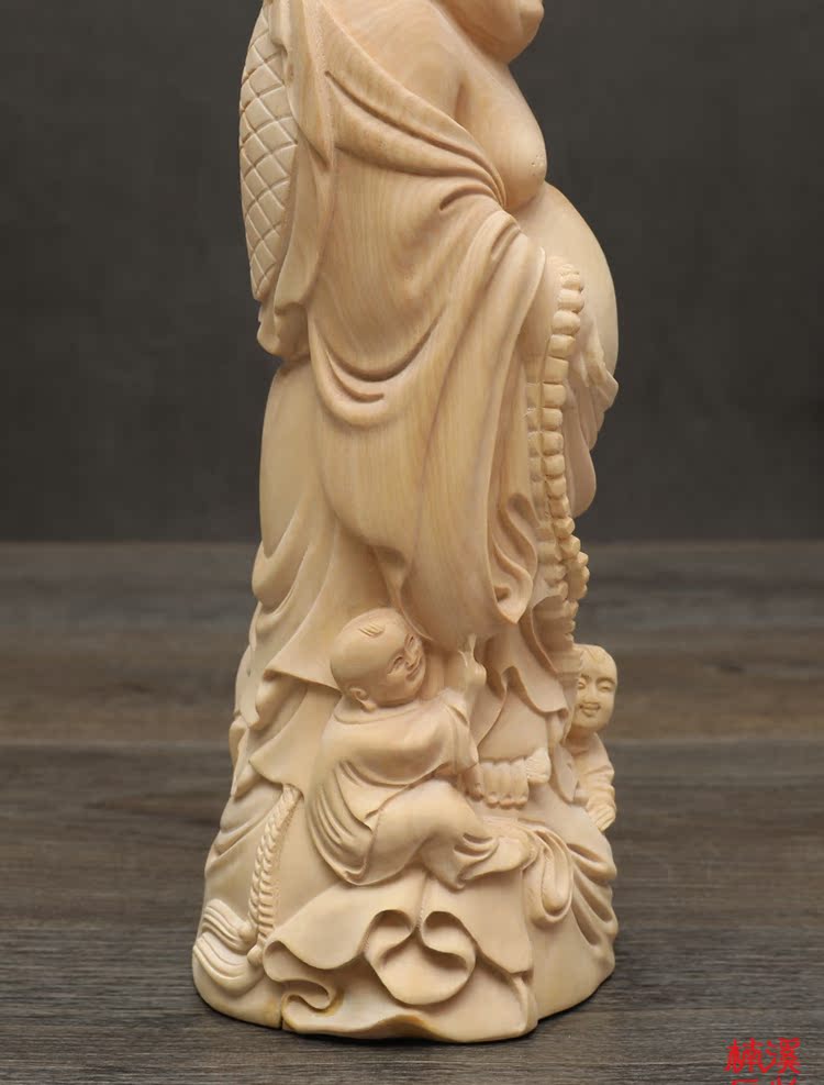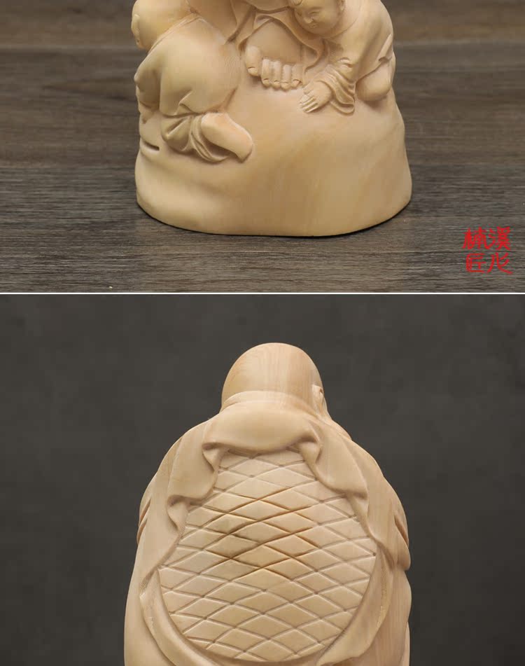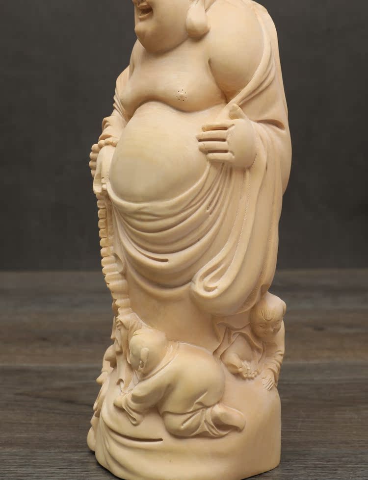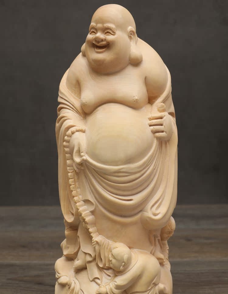 [2]楠溪匠心黃楊木雕三子彌勒擺件實木雕刻工藝品送子彌勒佛像大肚佛1入