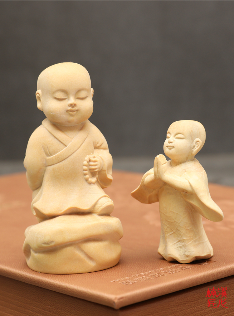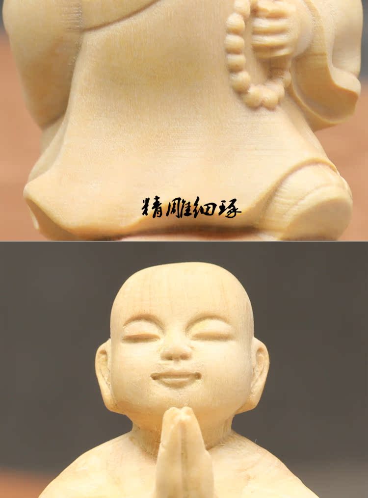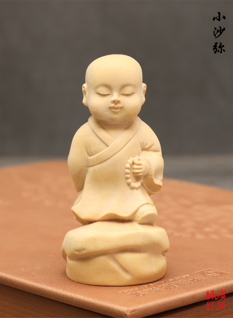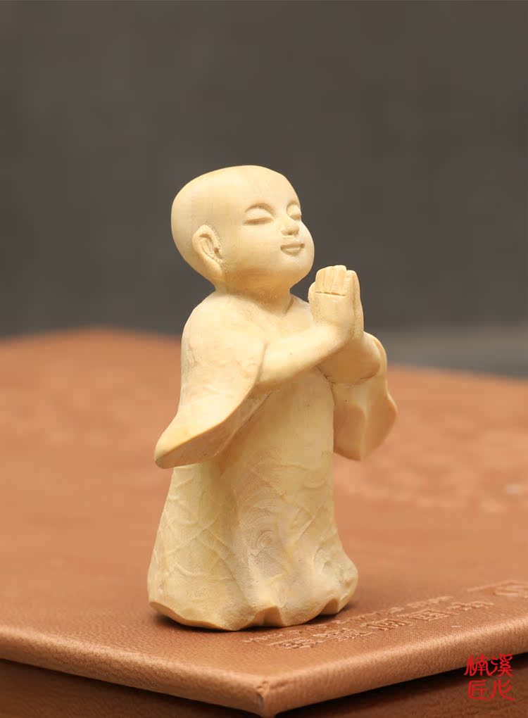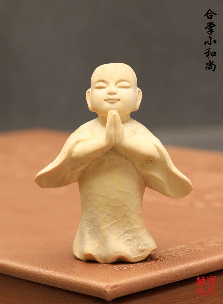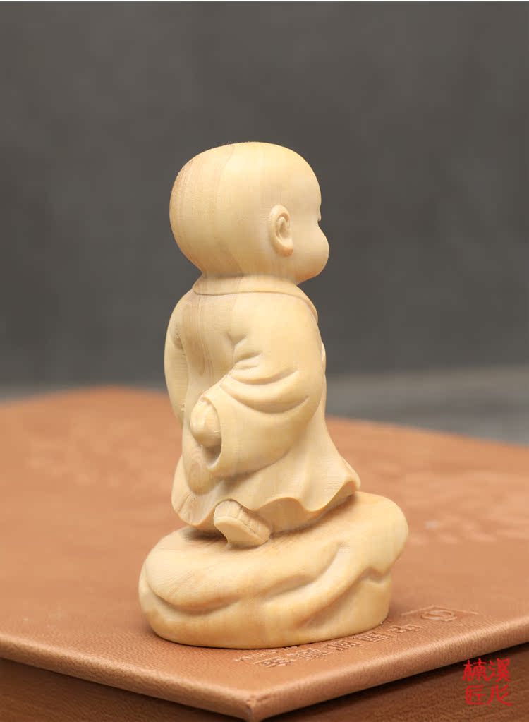 [2]楠溪匠心黃楊木雕刻無相小和尚擺件中式禪意無相佛實木佛像小沙彌1入