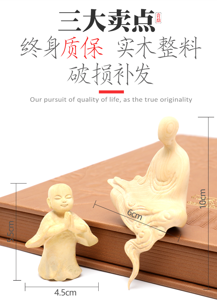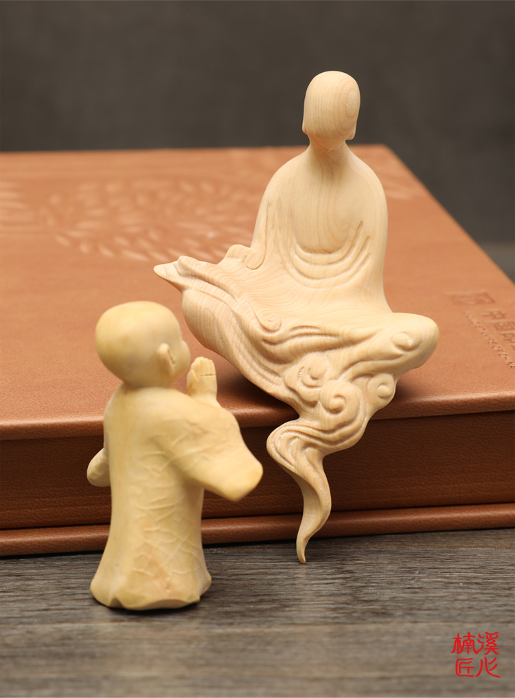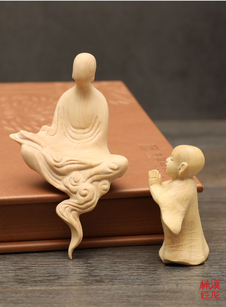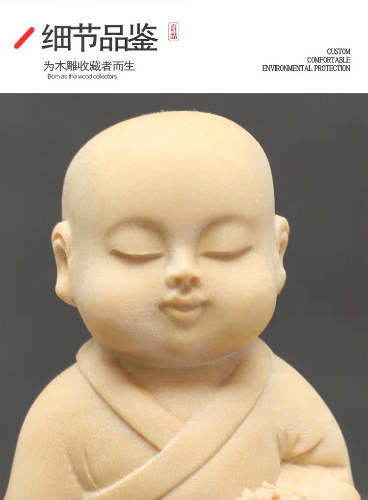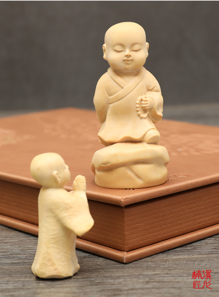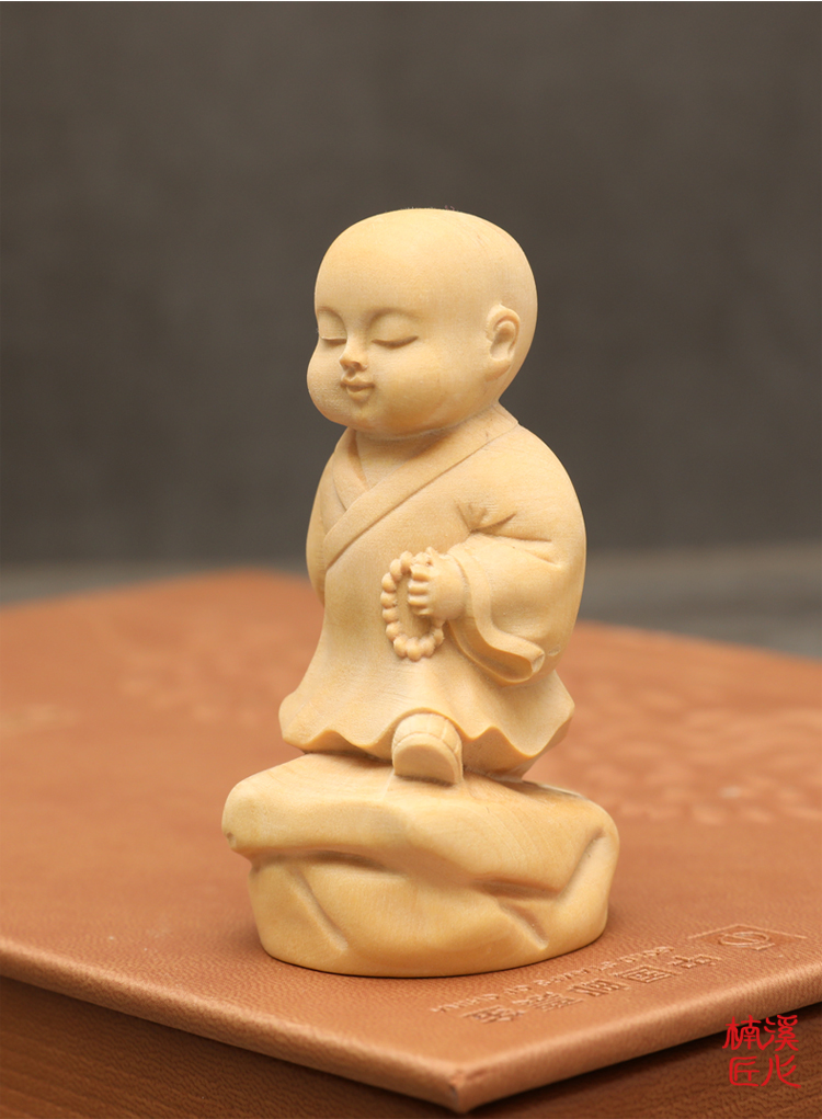 [2]楠溪匠心黃楊木雕刻無相小和尚擺件中式禪意無相佛實木佛像小沙彌1入