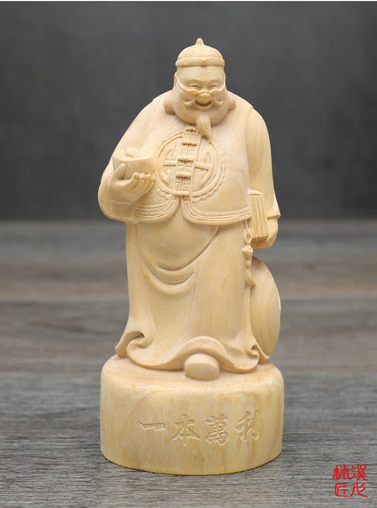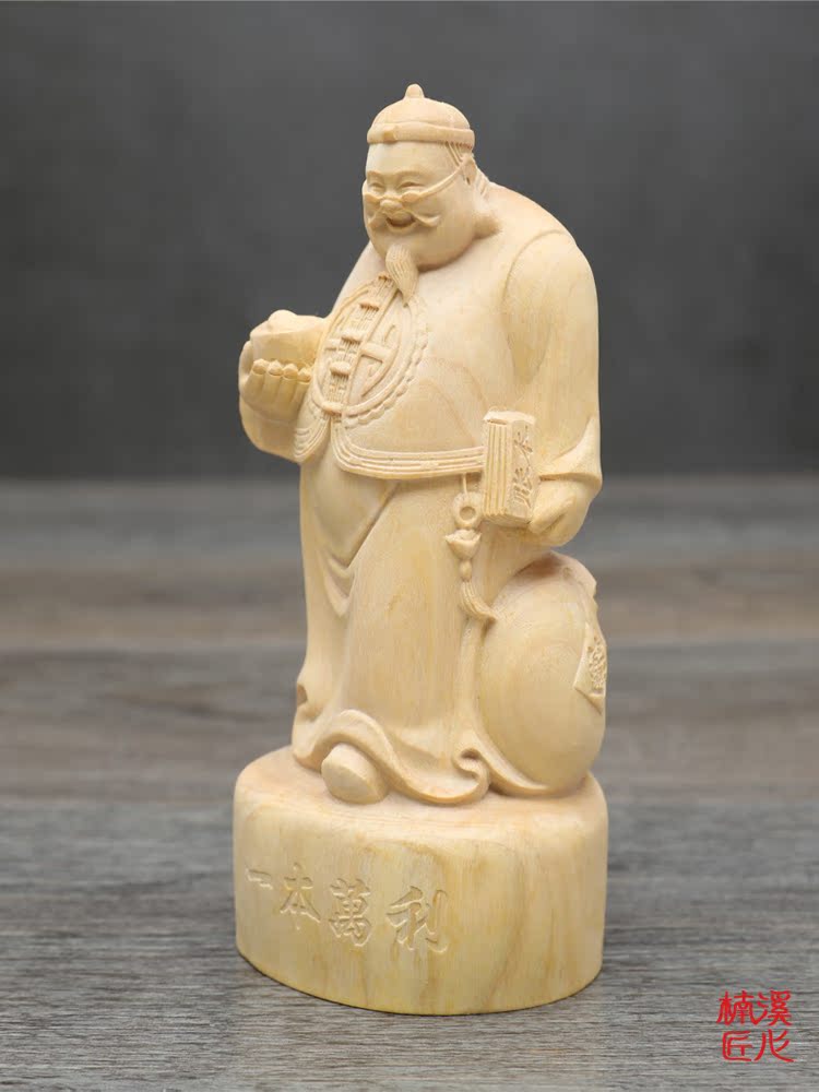 楠溪匠心黃楊木雕刻一本萬利地主財主擺件招財進寶實木工藝品擺設1入
