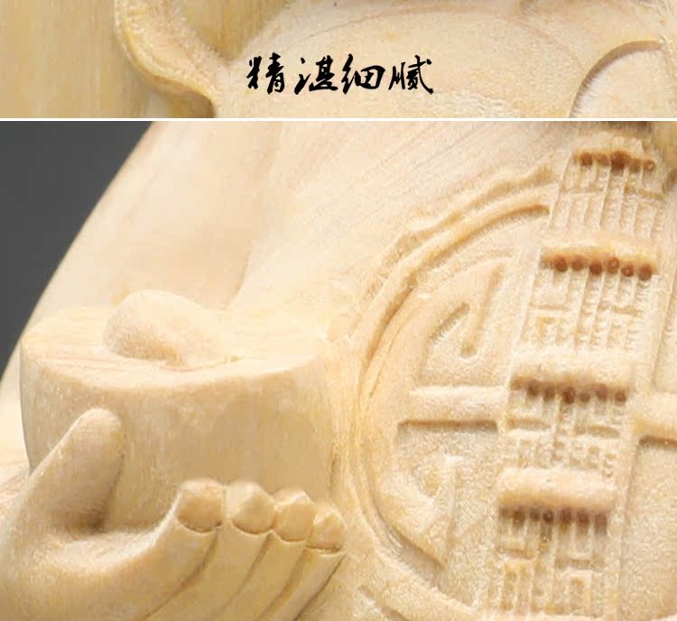 [2]楠溪匠心黃楊木雕刻一本萬利地主財主擺件招財進寶實木工藝品擺設1入