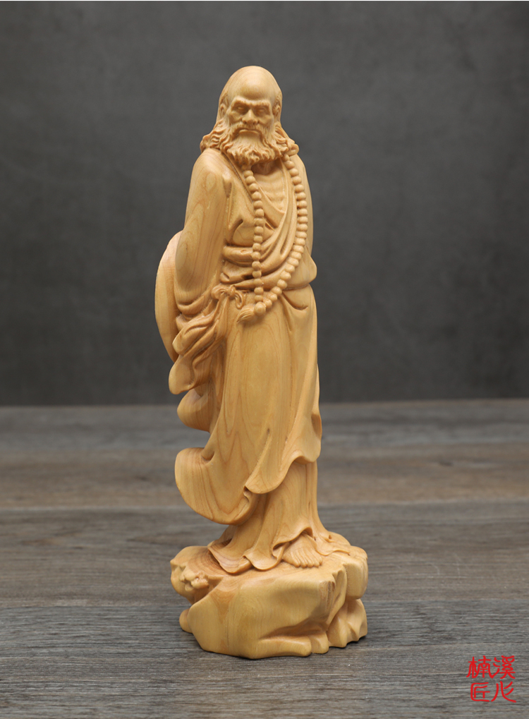 楠溪匠心黃楊木雕達摩祖師佛像實木雕刻禪意擺件菩提達磨佛祖擺設1入