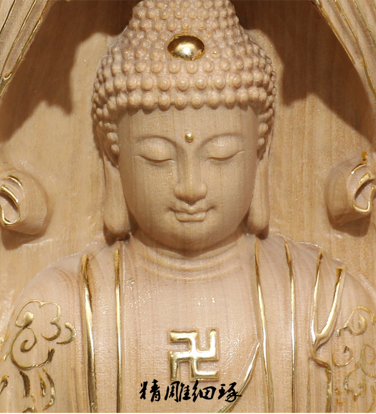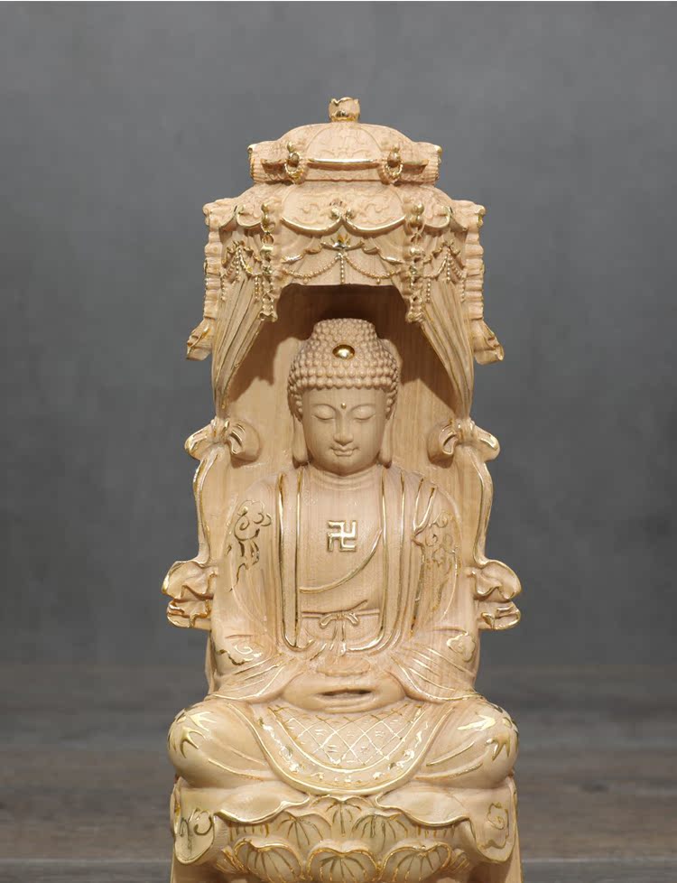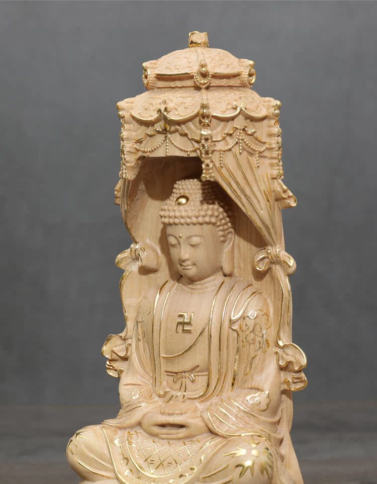 楠溪匠心黃楊木雕刻釋迦牟尼佛擺件大日如來佛主阿彌陀佛佛像貼金1入