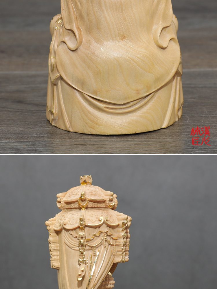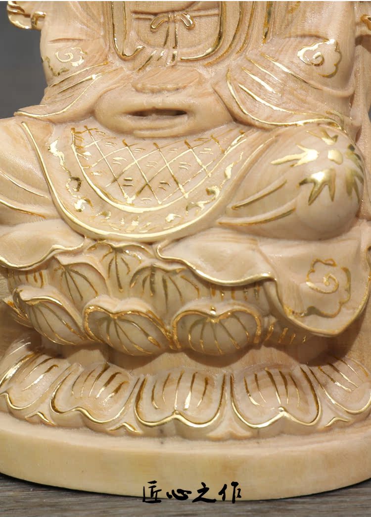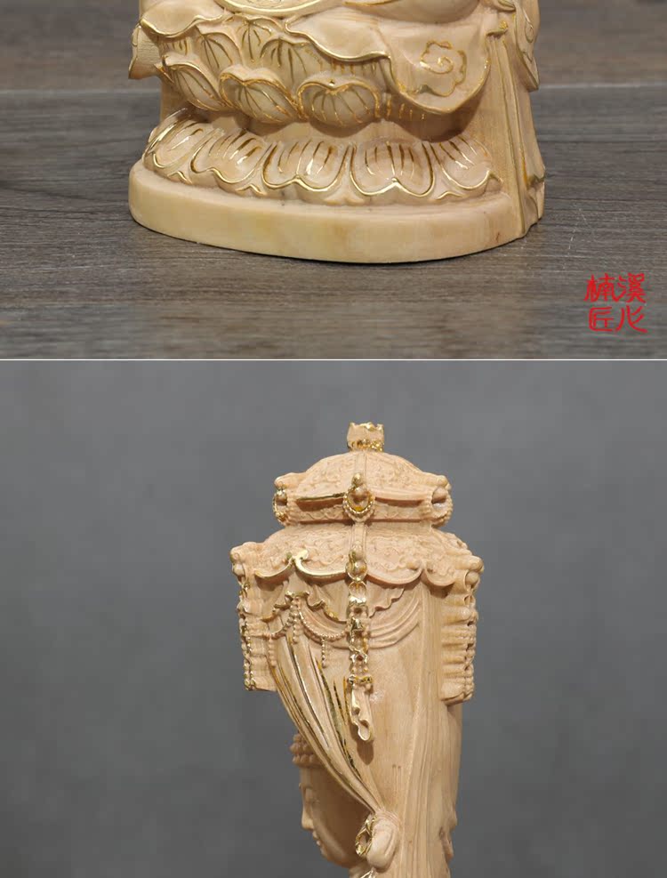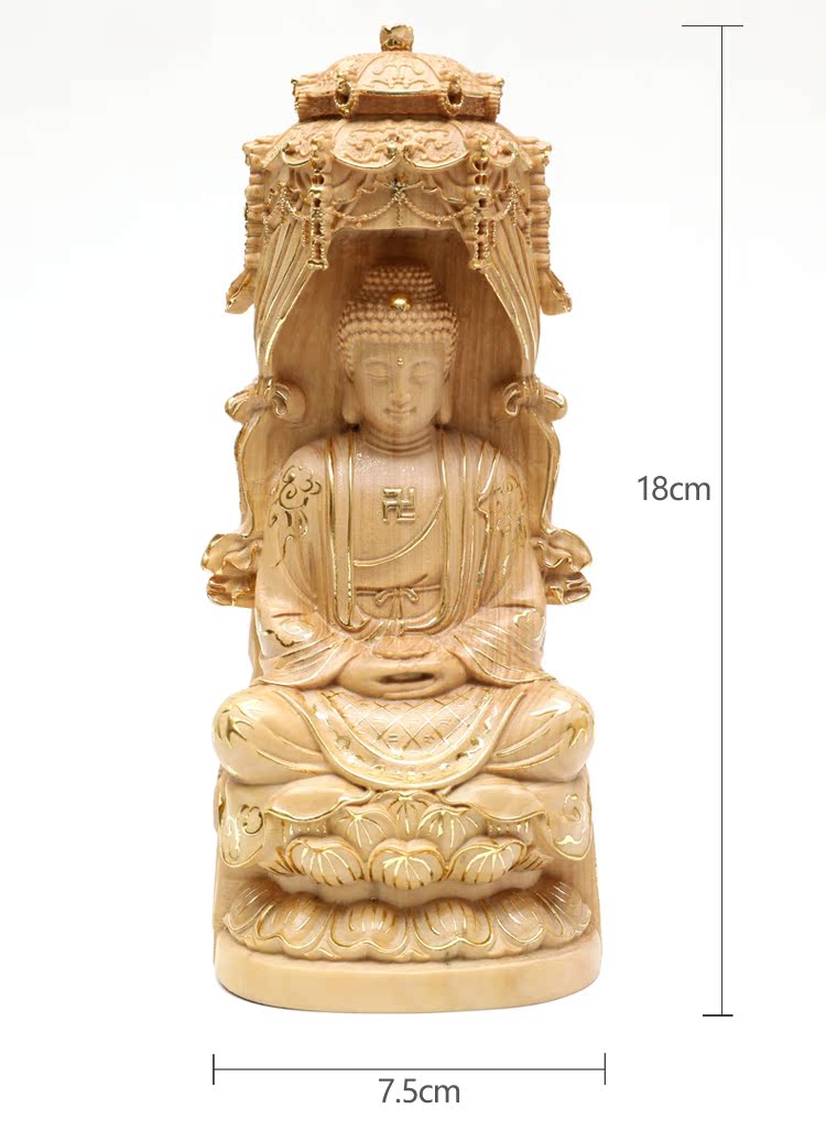 [2]楠溪匠心黃楊木雕刻釋迦牟尼佛擺件大日如來佛主阿彌陀佛佛像貼金1入