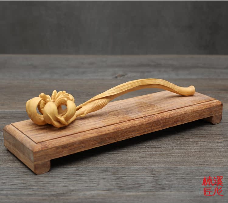 楠溪匠心黃楊木雕刻如意擺件實木工藝品招財鎮宅吉祥物家居裝飾品1入