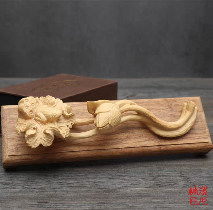 [2]楠溪匠心黃楊木雕刻如意擺件實木工藝品招財鎮宅吉祥物家居裝飾品1入