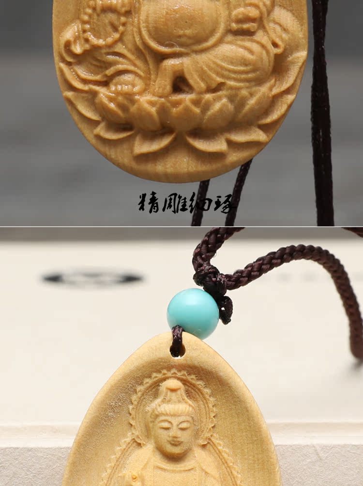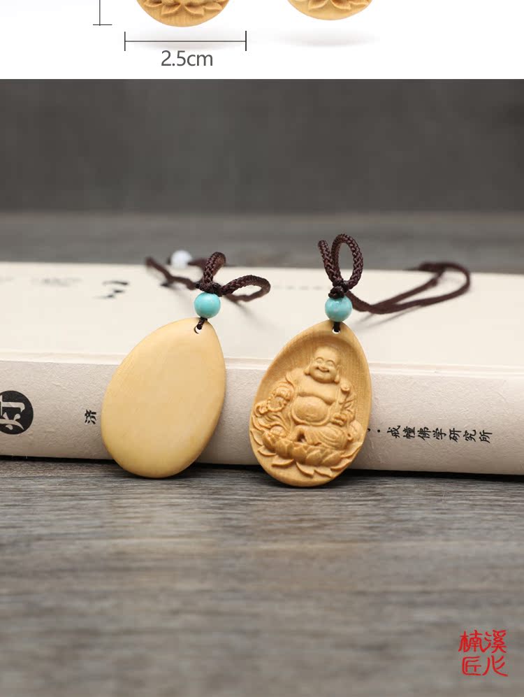 [2]楠溪匠心黃楊木雕觀音像彌勒佛項鏈木質掛件情侶生日寶寶周歲送禮1入