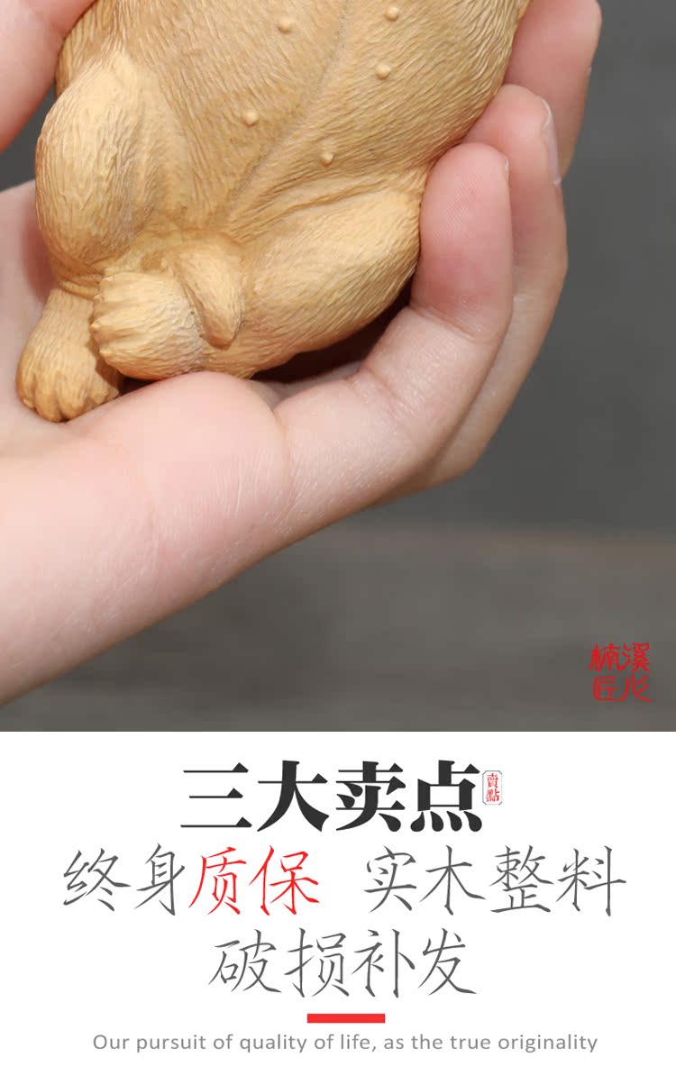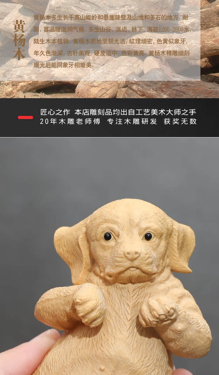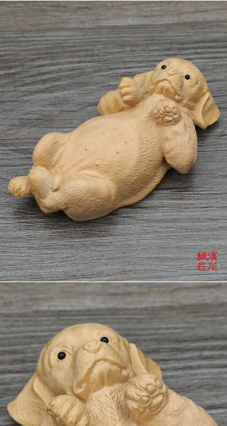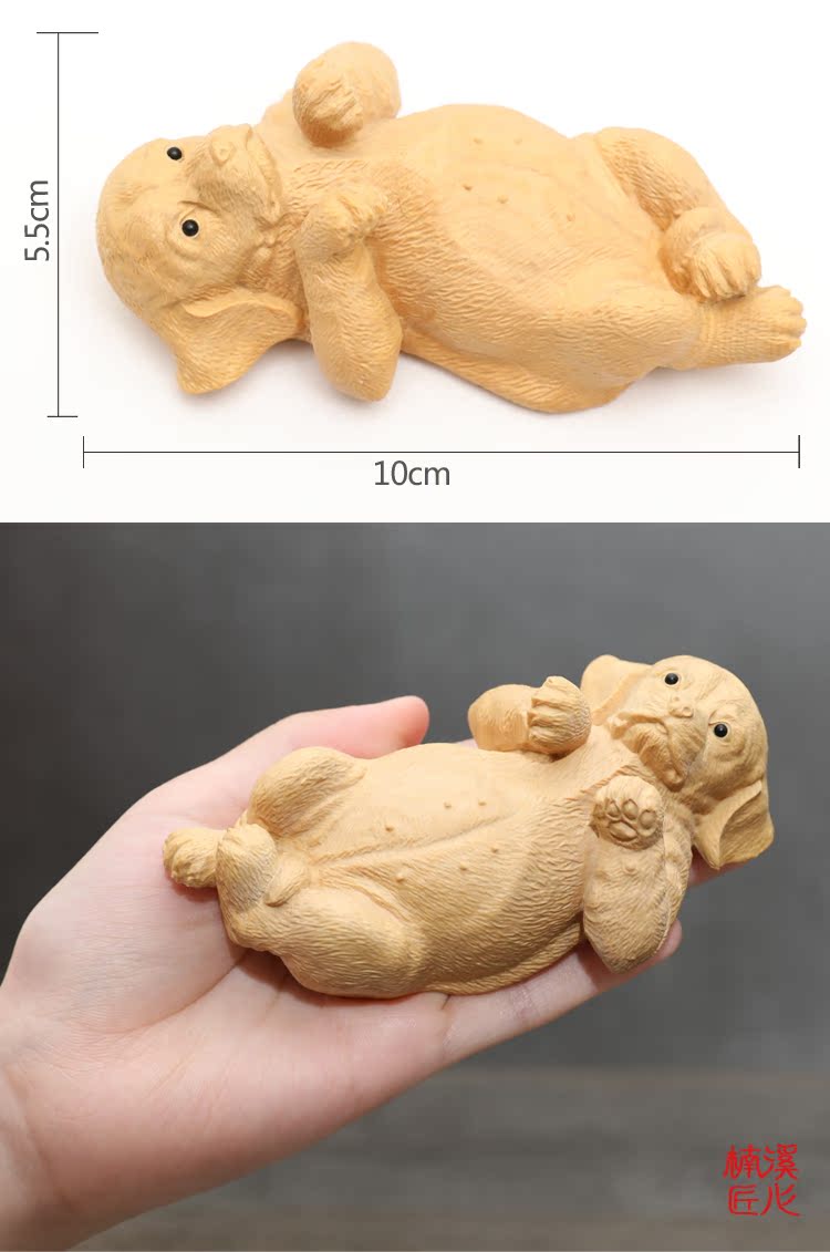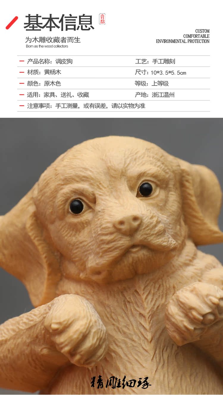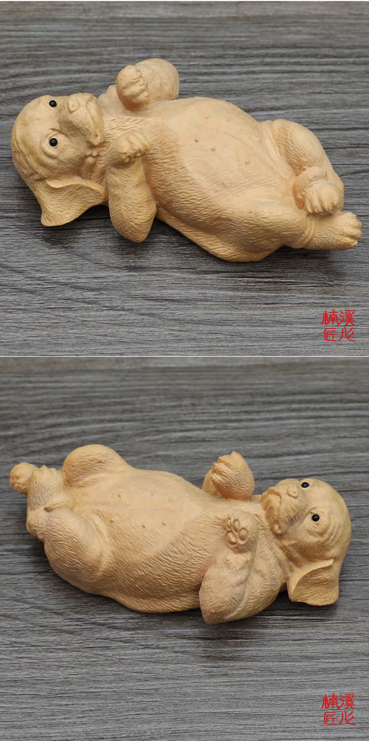 [2]楠溪匠心木雕動物小狗擺件手把件雕刻工藝家居飾品木刻茶寵調皮狗1入