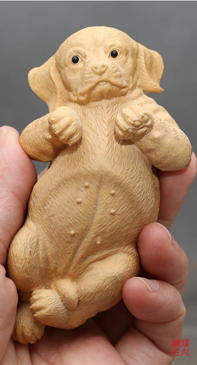 楠溪匠心木雕動物小狗擺件手把件雕刻工藝家居飾品木刻茶寵調皮狗1入