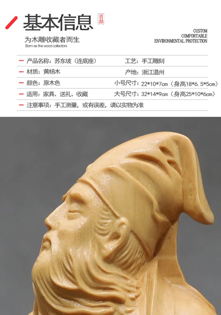 [2]楠溪匠心黃楊木雕人物手把件蘇東坡帶底座雕像圖書館書房實木擺件1入