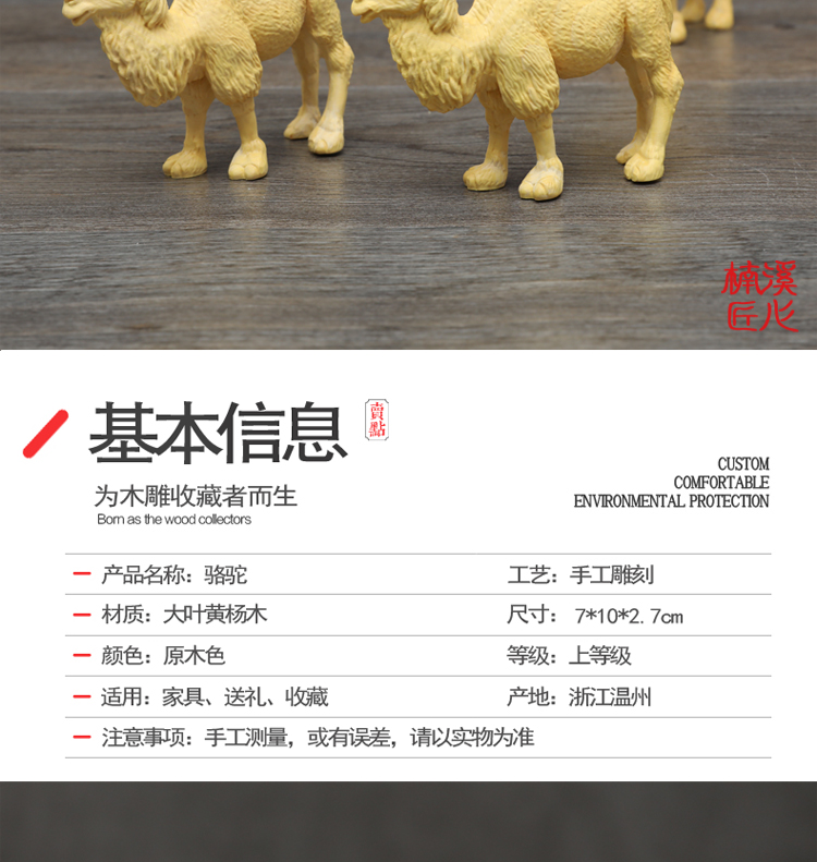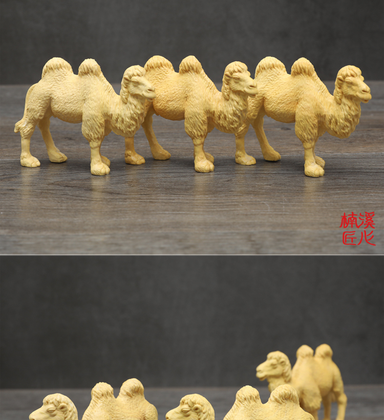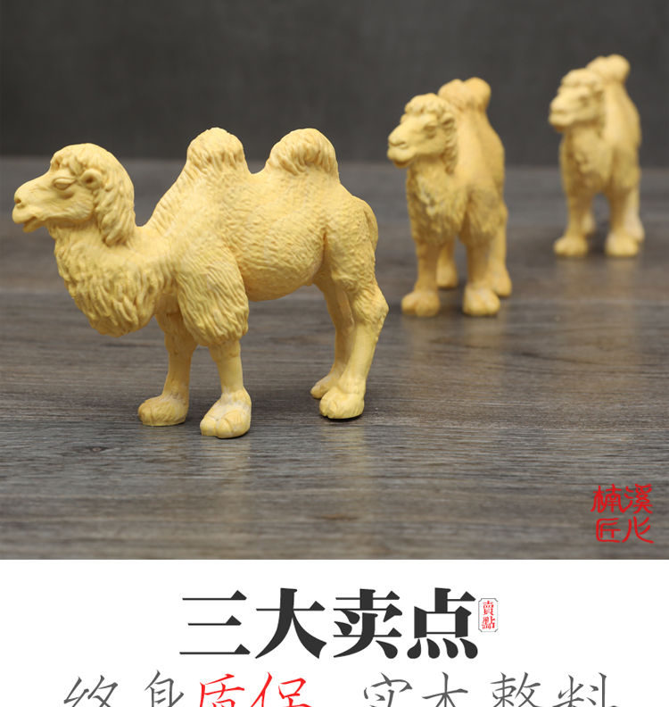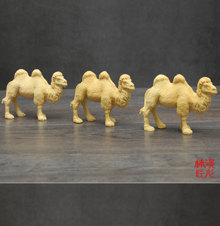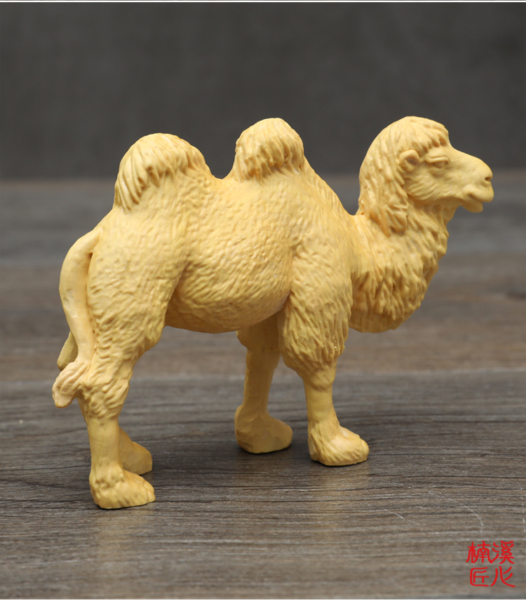 楠溪匠心黃楊木雕駱駝擺件工藝品仿真動物手把件沙漠之王軟裝飾品1入