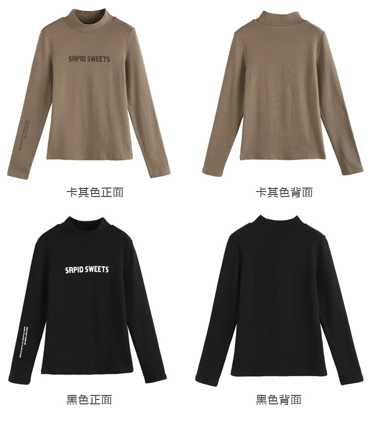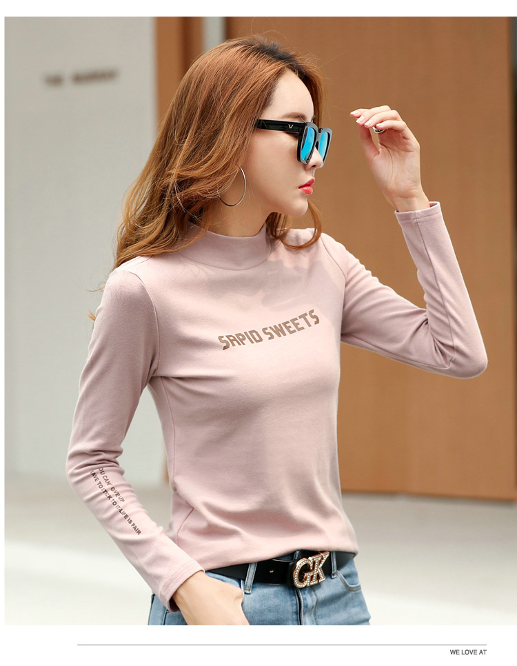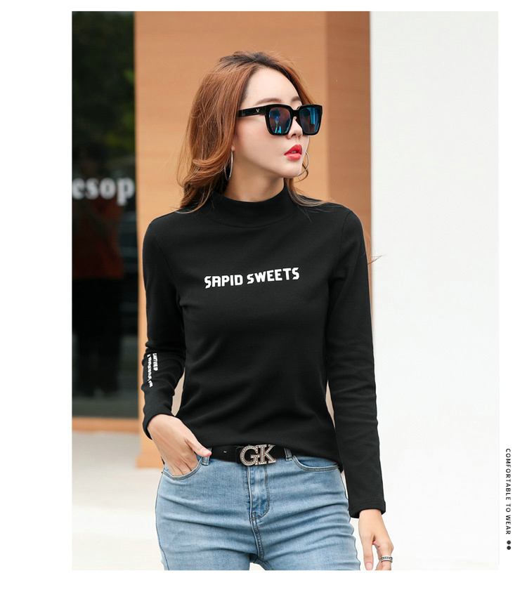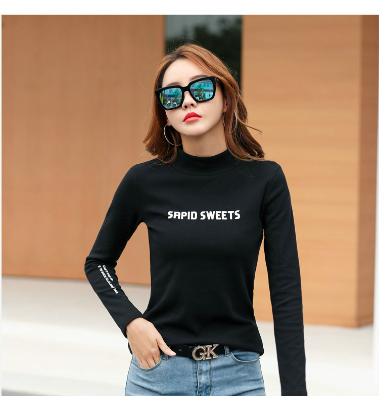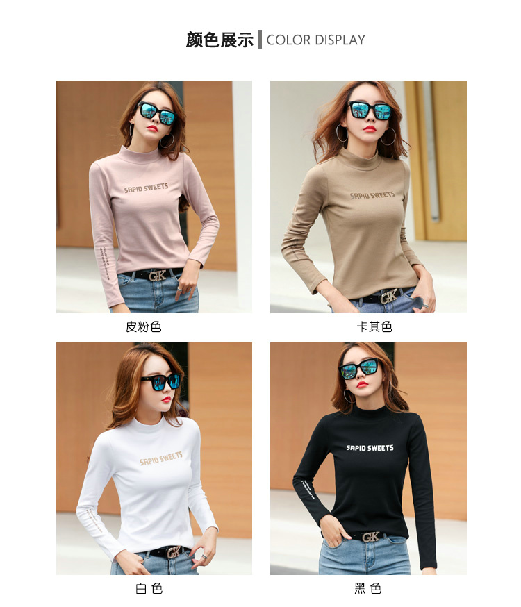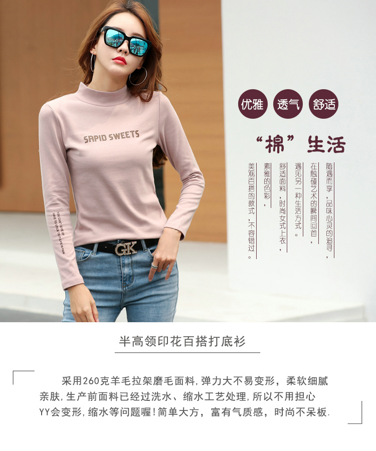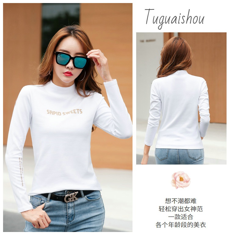 2019春秋半高領純棉打底衫女長袖中領字母修身t恤40歲中年媽媽t?1入