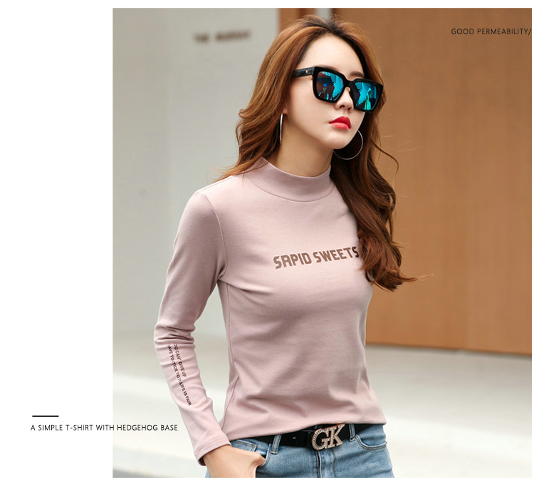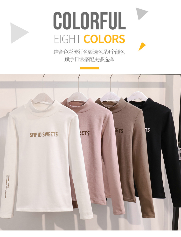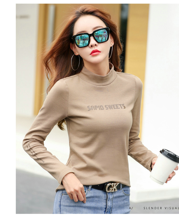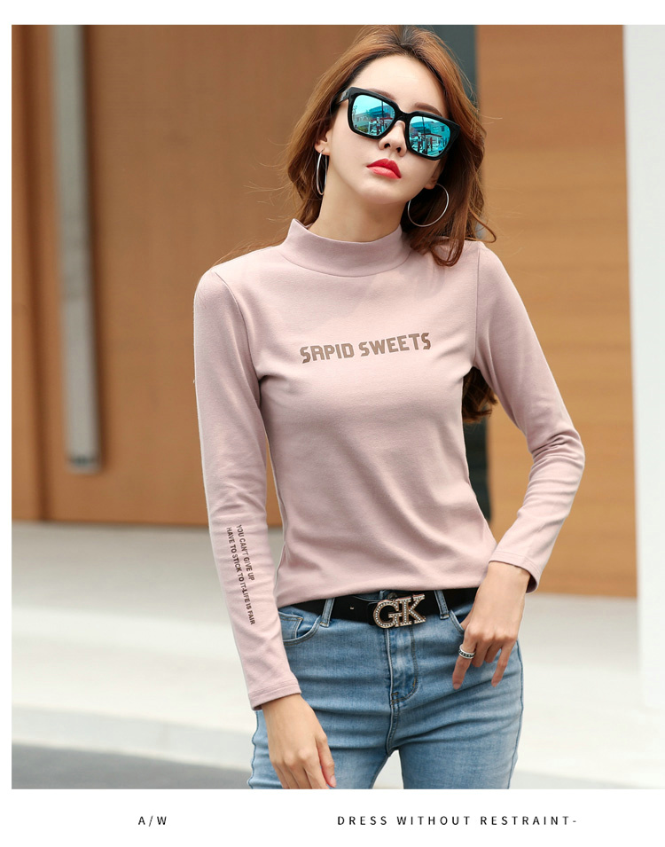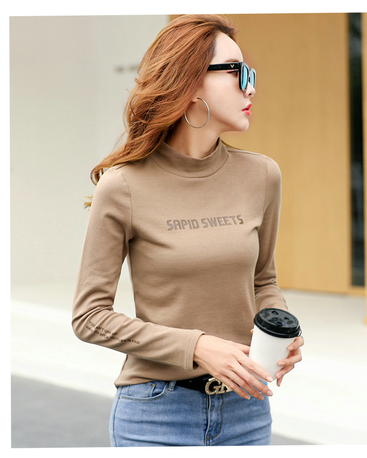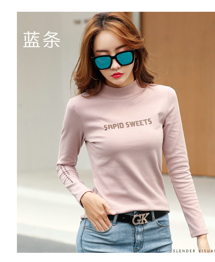 2019春秋半高領純棉打底衫女長袖中領字母修身t恤40歲中年媽媽t?1入