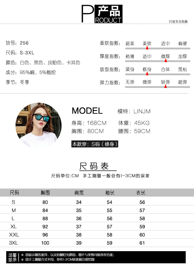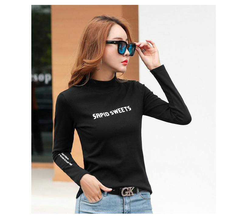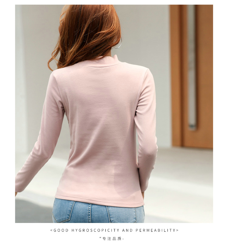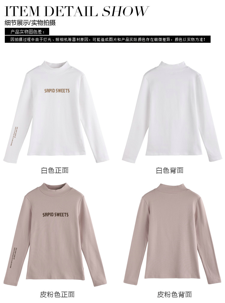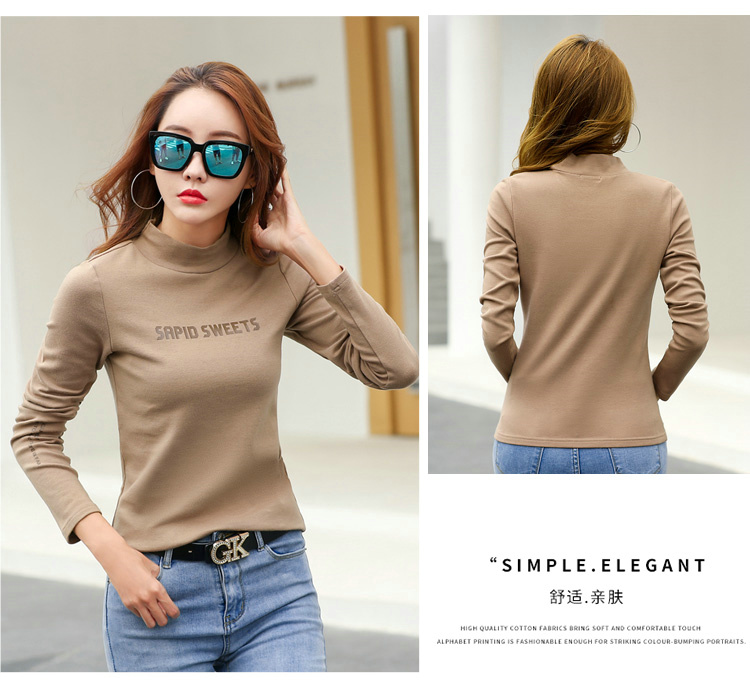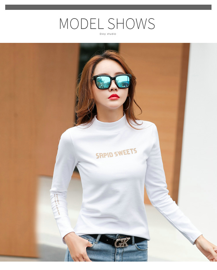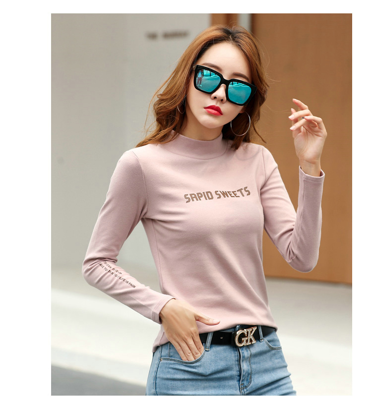 2019春秋半高領純棉打底衫女長袖中領字母修身t恤40歲中年媽媽t?1入