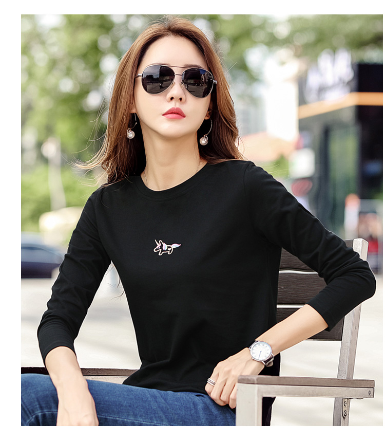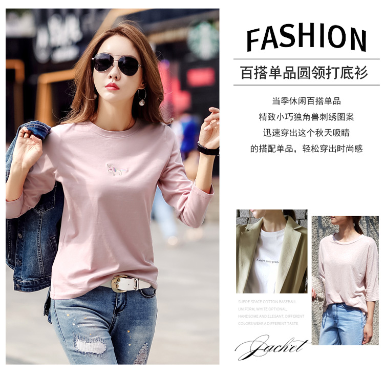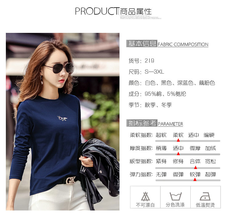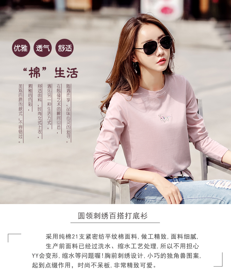 2019春秋純棉長袖t恤女老人奶奶上衣t?中老年媽媽全棉打底衫秋衣1入