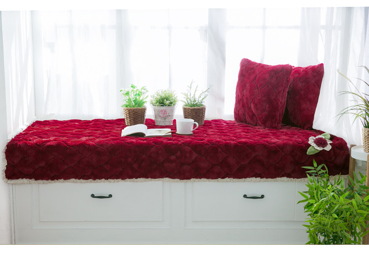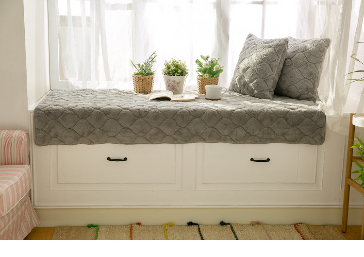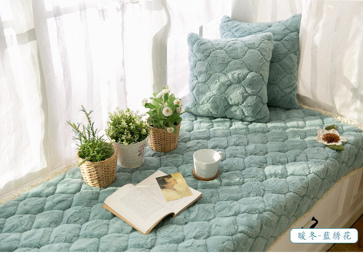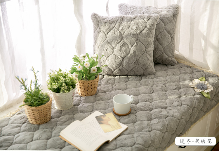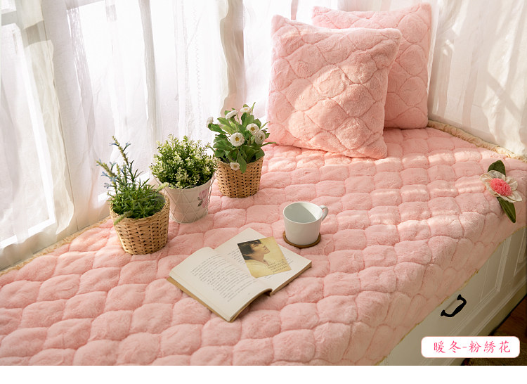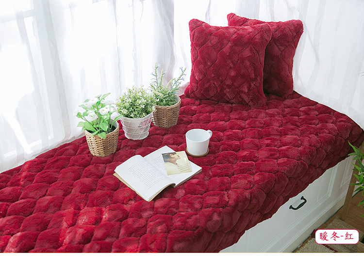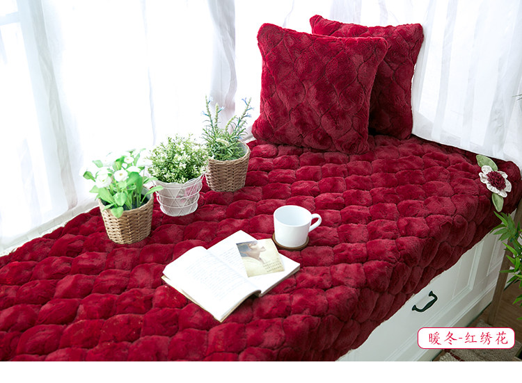 加厚毛絨飄窗墊窗臺墊榻榻米坐墊手工繡花防滑簡約現代坐墊定制1入