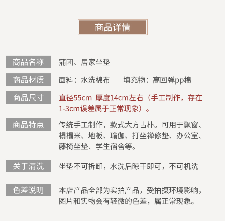 綿麻布藝蒲團加厚加大榻榻米圓形打坐墊學車拜佛學生增高辦公椅墊1入