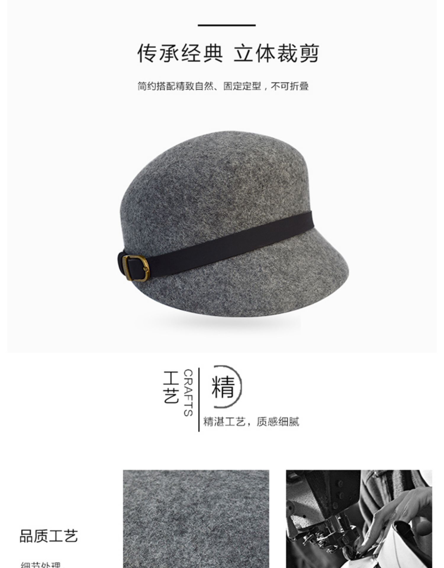 2019新款羊毛帽呢帽鴨舌帽帽子秋冬女潮百搭韓版英倫女式街頭禮帽1入