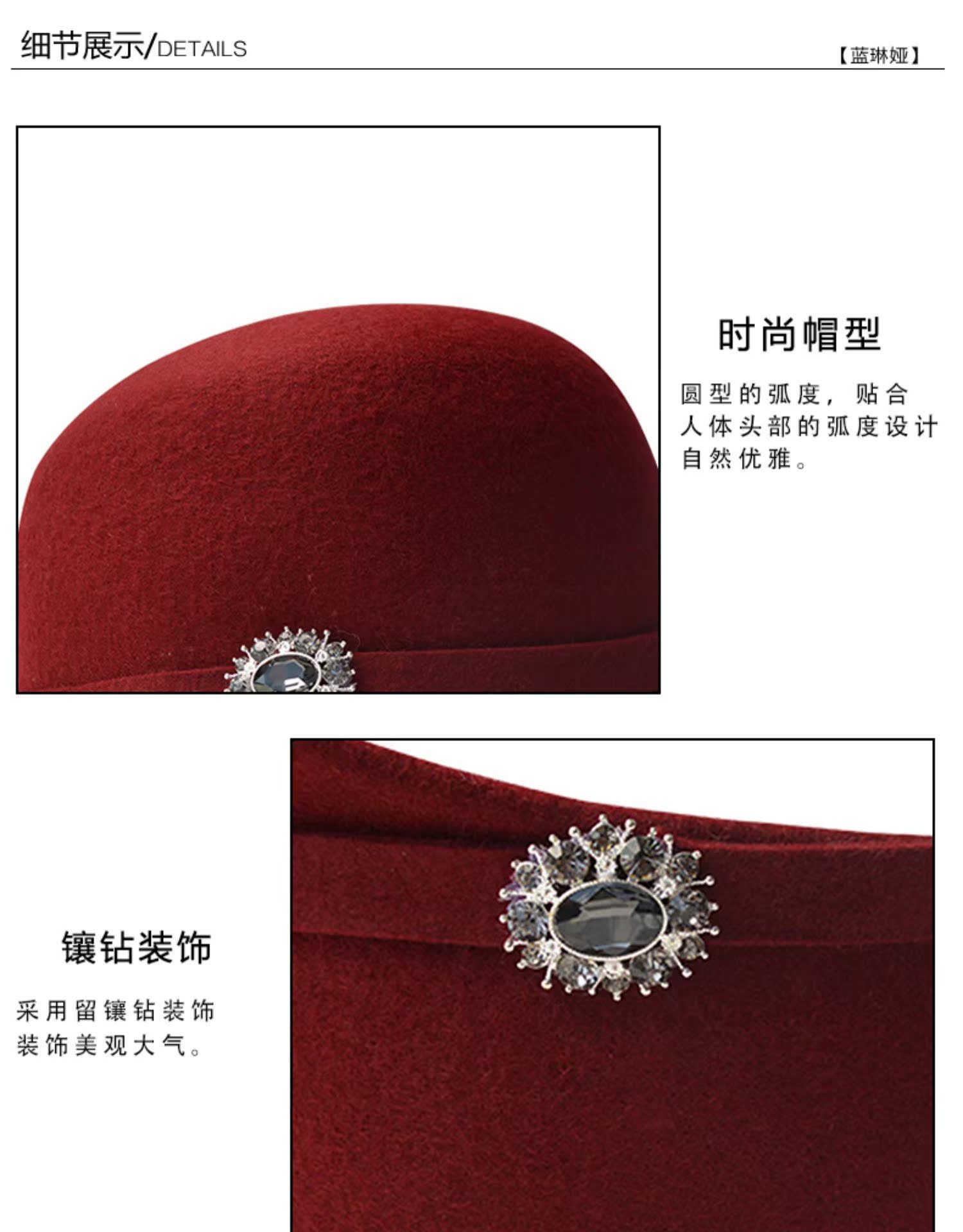 2019秋冬季新款女羊毛帽禮帽鴨舌帽百搭英倫貝雷帽復古蓓蕾帽氈帽1入