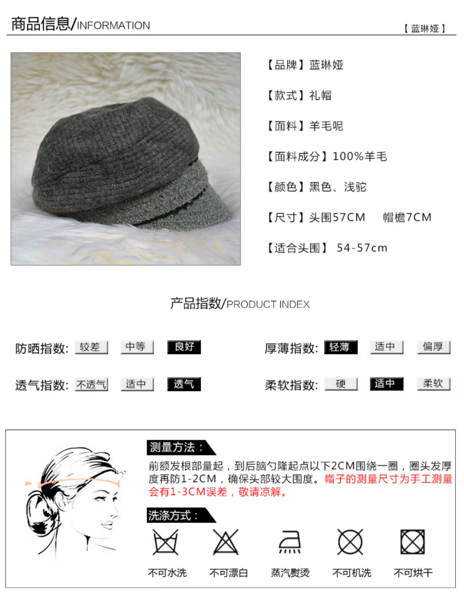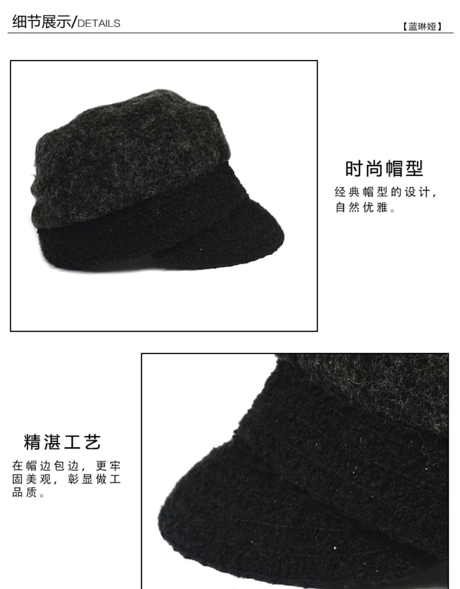 2019新款帽子秋冬女帽羊毛帽保暖帽子鴨舌帽百搭韓版英倫時尚女生1入