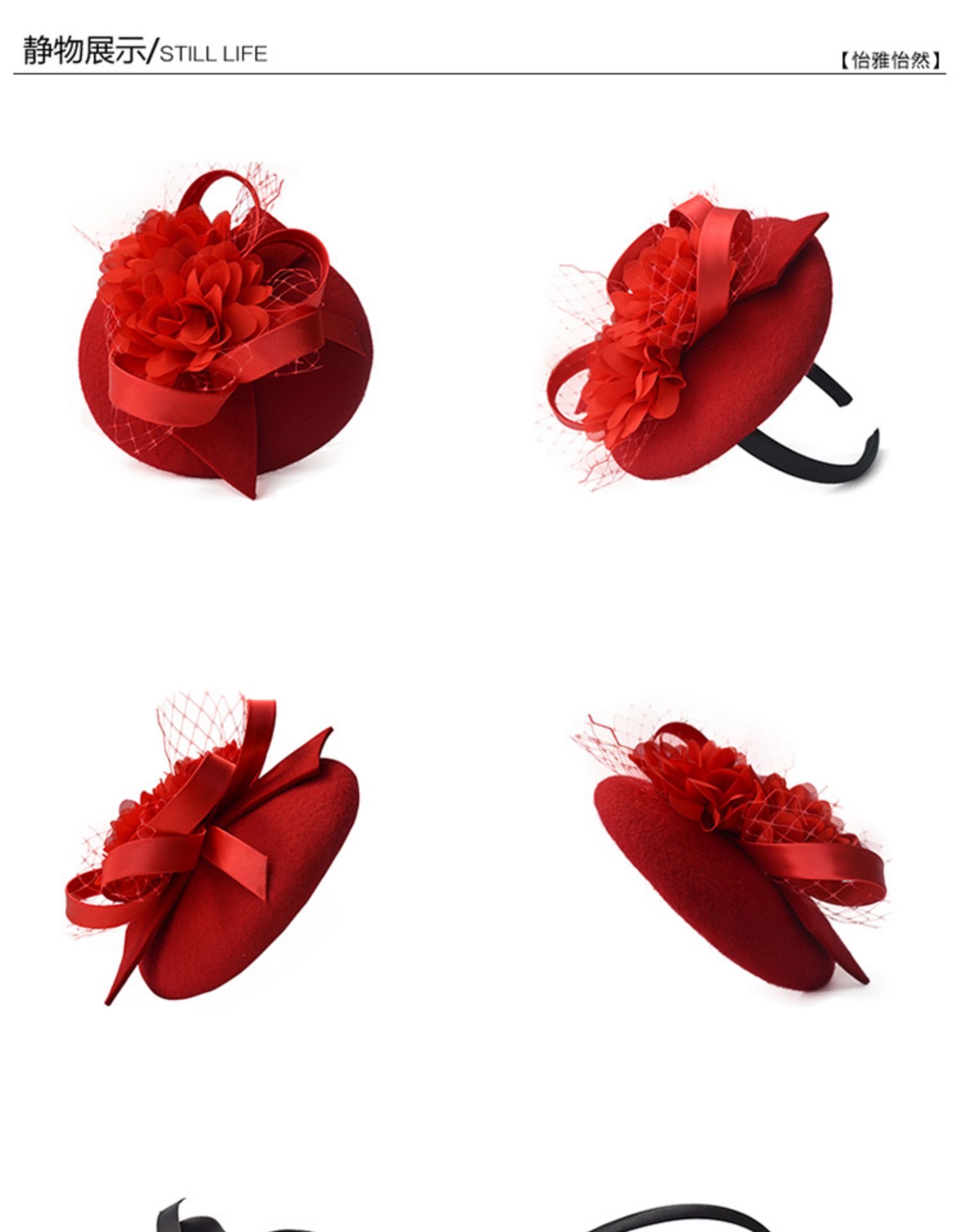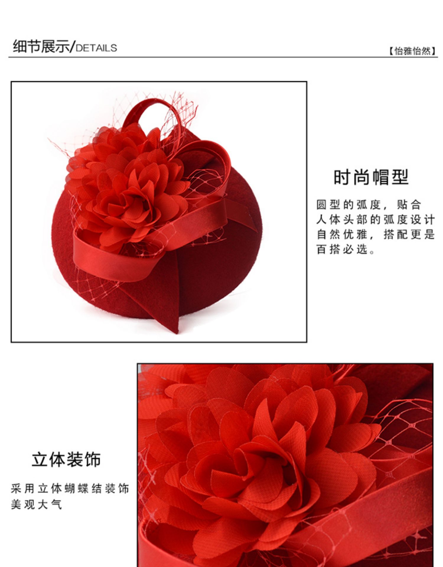 2019秋冬季英倫百搭小禮帽時尚宴會帽羊毛帽貝雷帽女可愛蓓蕾帽1入