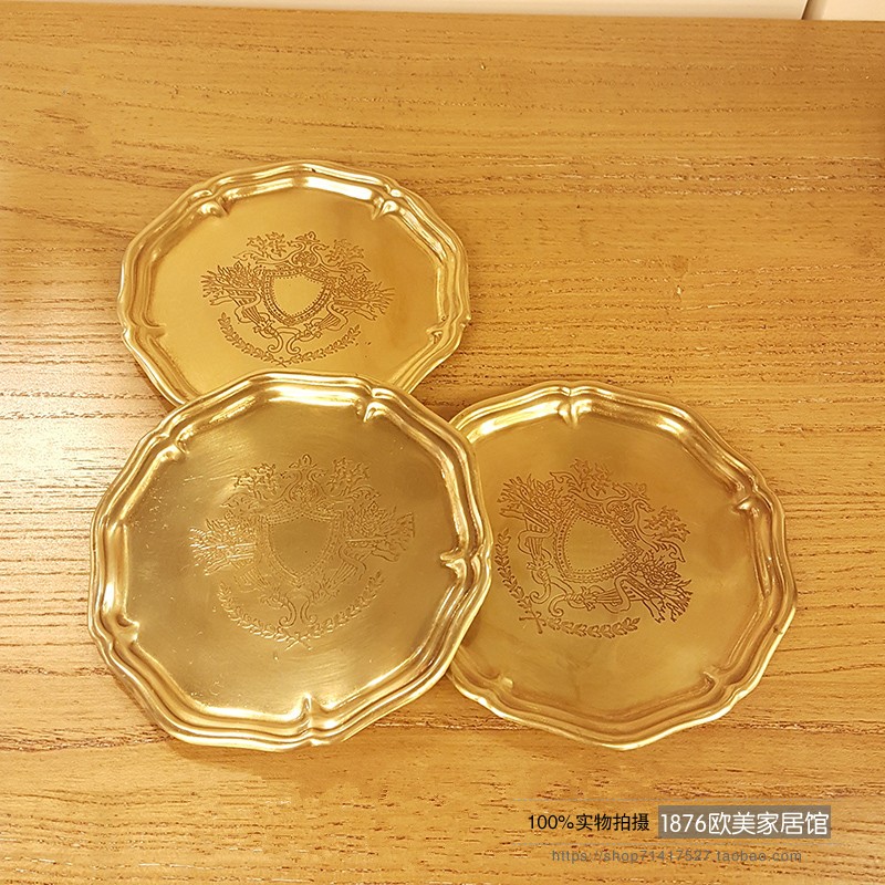 純銅黃銅杯墊茶墊子歐美式小碟子零食碟創意簡約隔熱擺件1入