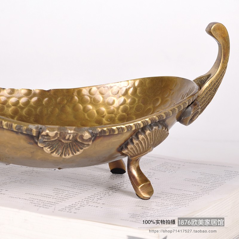 純銅黃銅手工美式托盤個性錘紋家用橢圓形雕花水果盤擺件1入