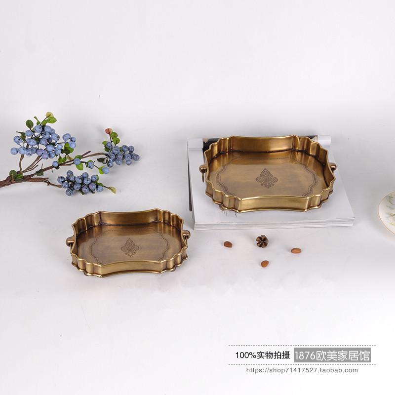【品名】:印度進口手工黃銅高檔創意雙環托盤套裝