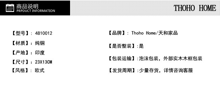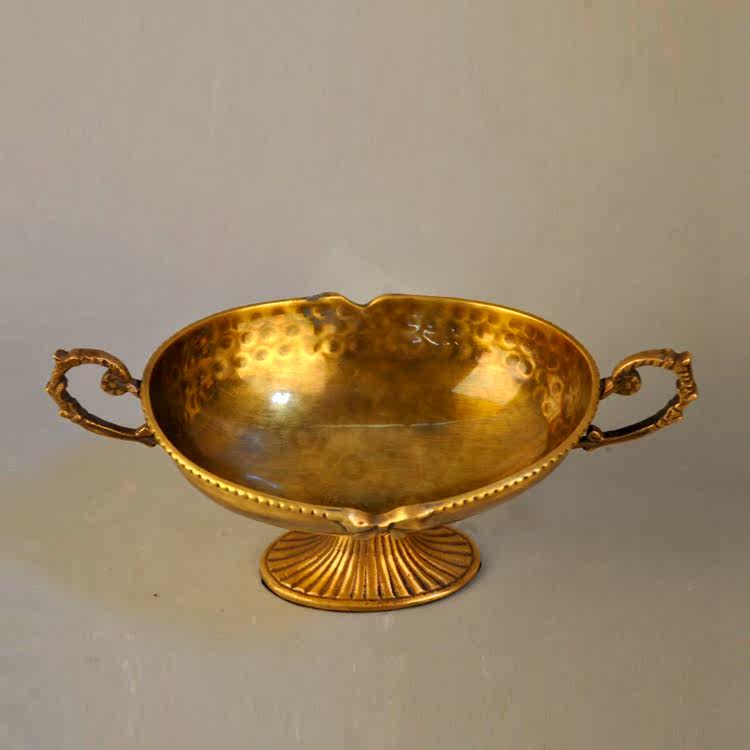 歐式法式手工復古純銅面托盤高端裝飾茶盤美式托盤擺件1入
