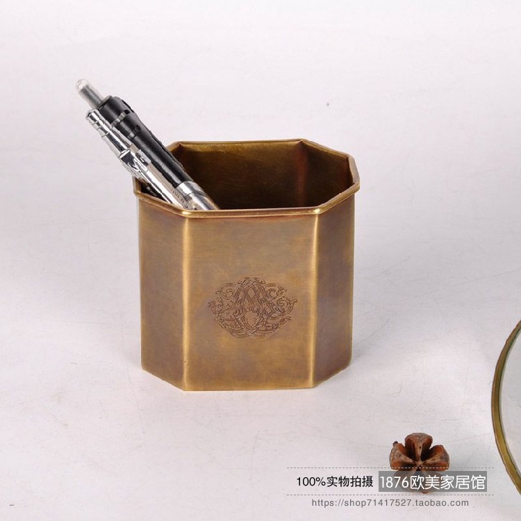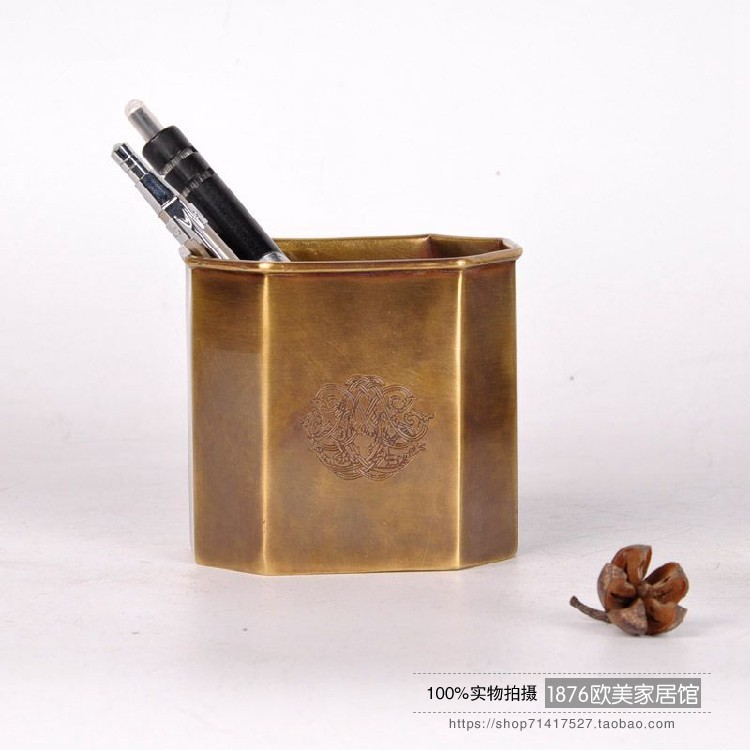 【品名】:印度進口黃銅雕花桌面擺件筆筒
