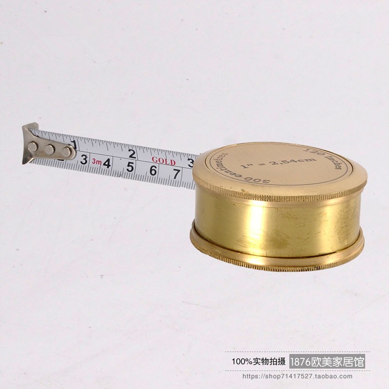 純手工黃銅3米卷尺隨身便攜復古書房工藝品收藏裝飾擺設1入