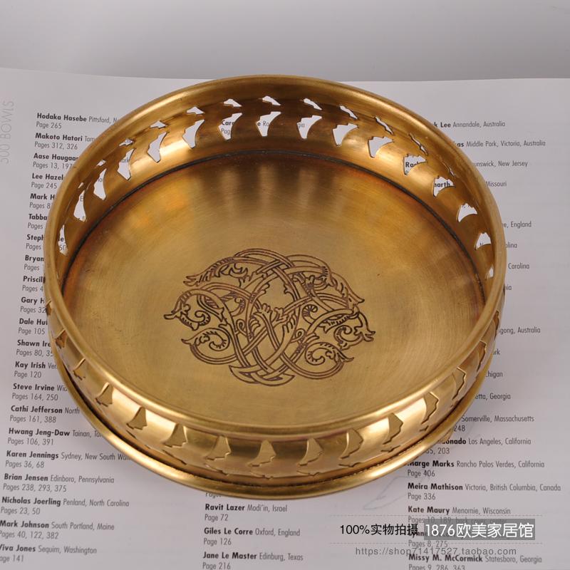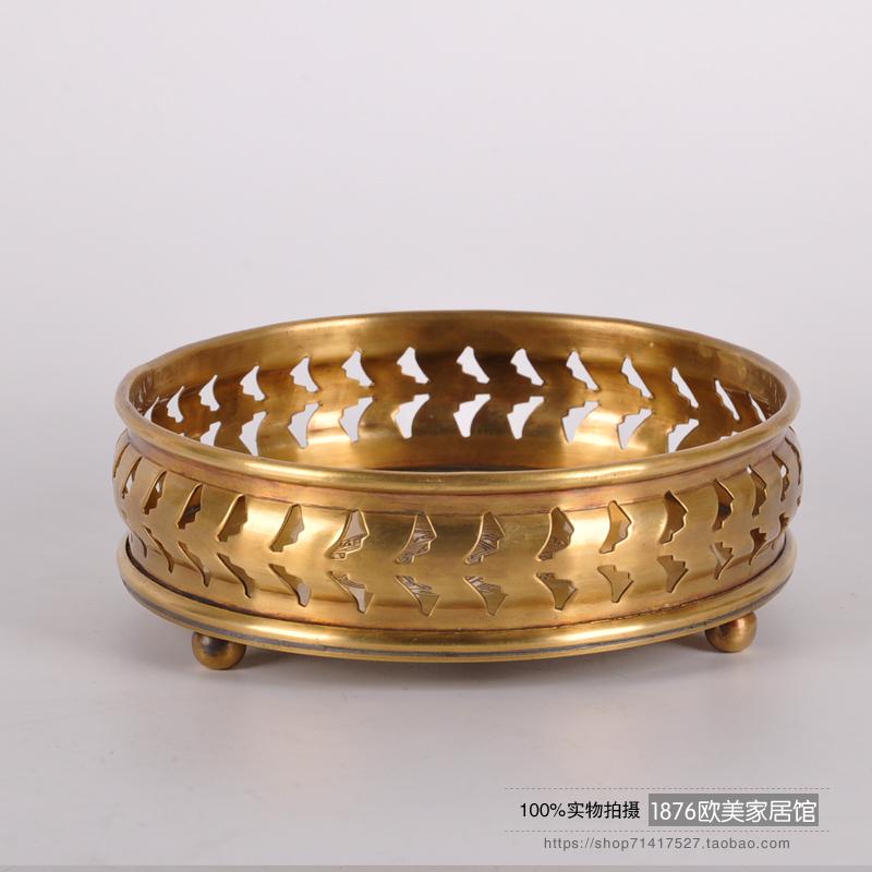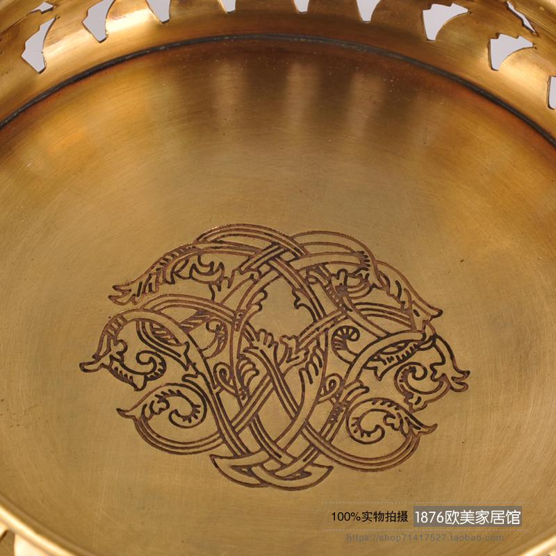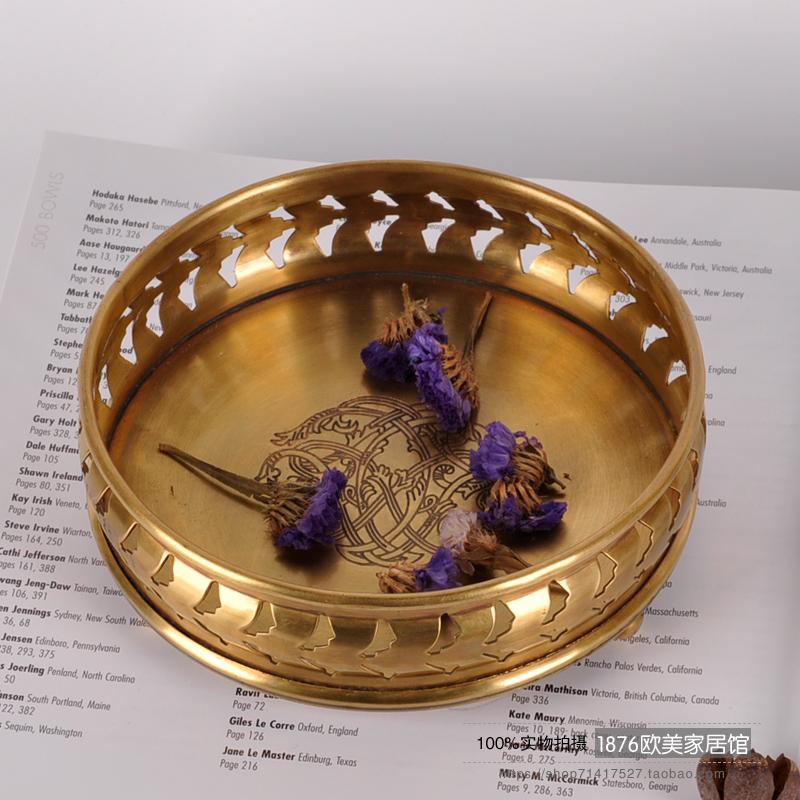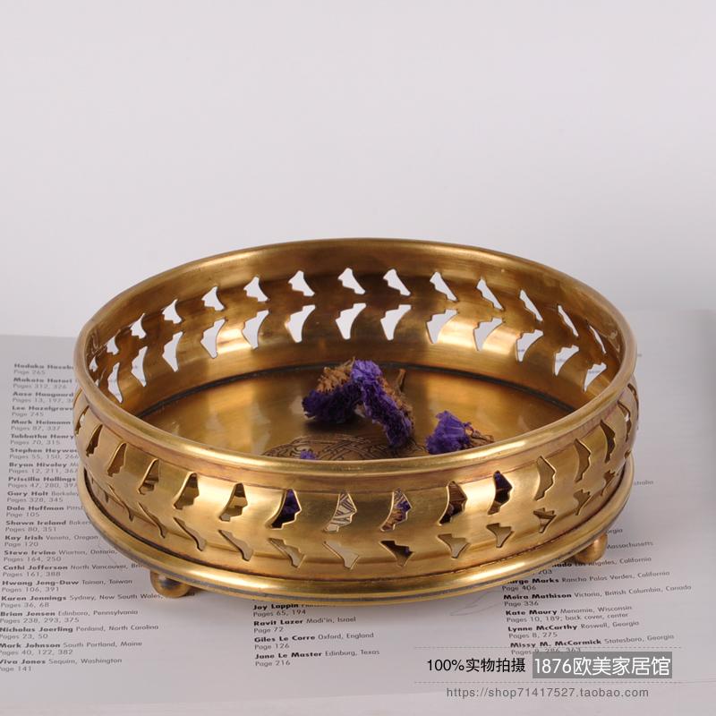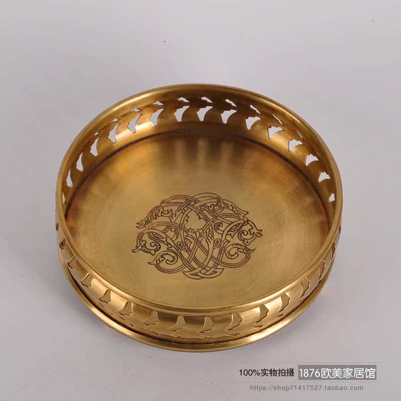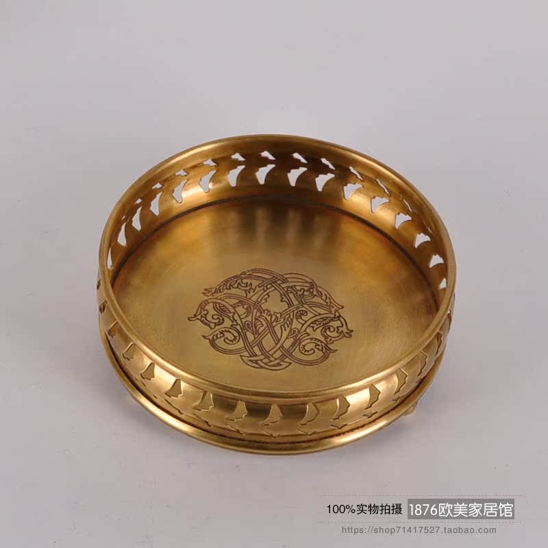 軟裝飾品歐式美式高端手工純銅圓形托盤裝飾收納碟首飾盤1入