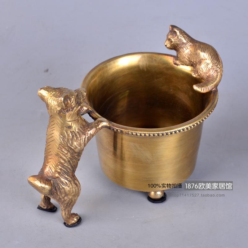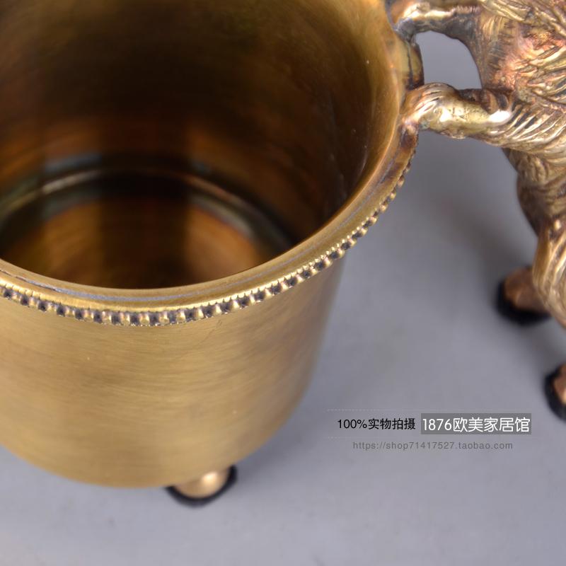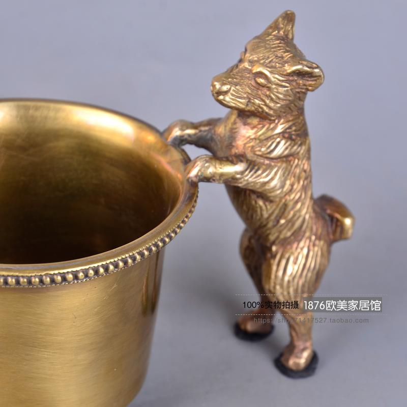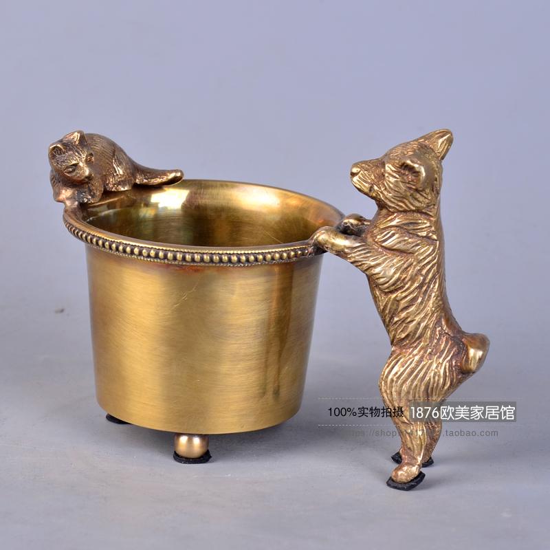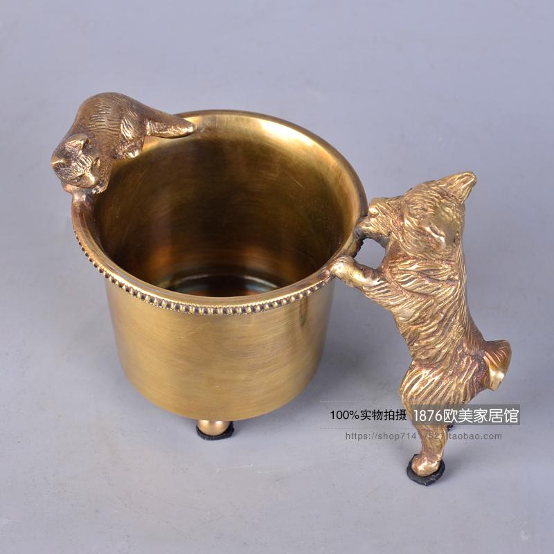 軟裝家居飾品美式手工純銅動物造型小收納筒裝飾筆筒擺件1入