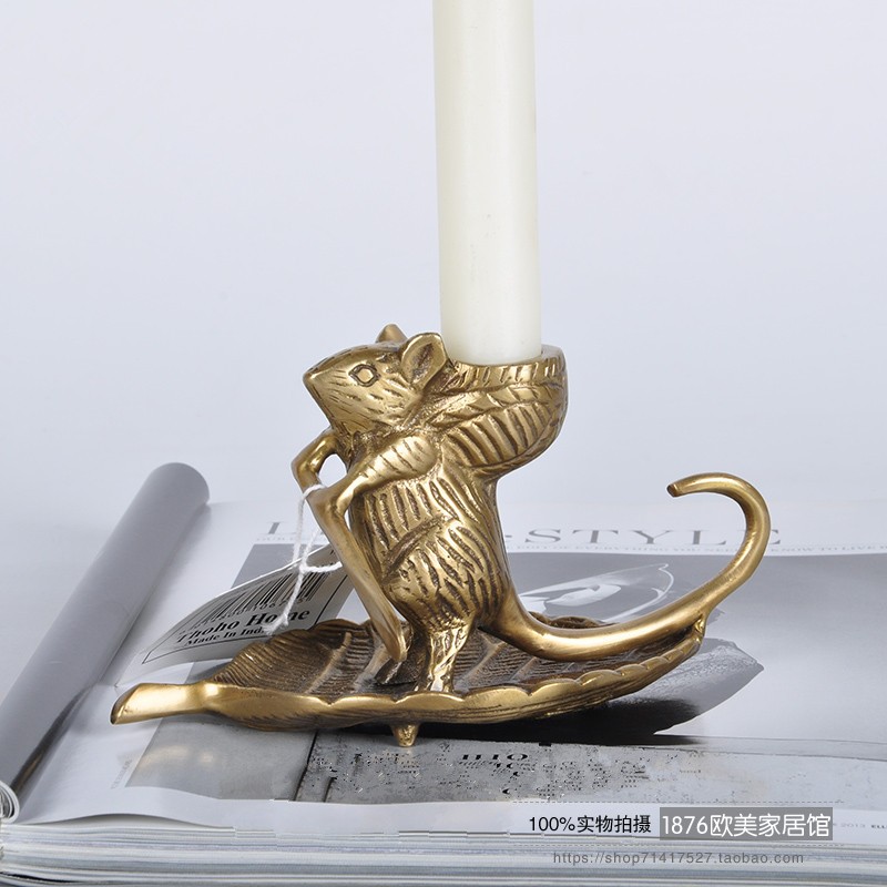 【產品名稱】印度進口銅器-黃金袋鼠燭臺擺件