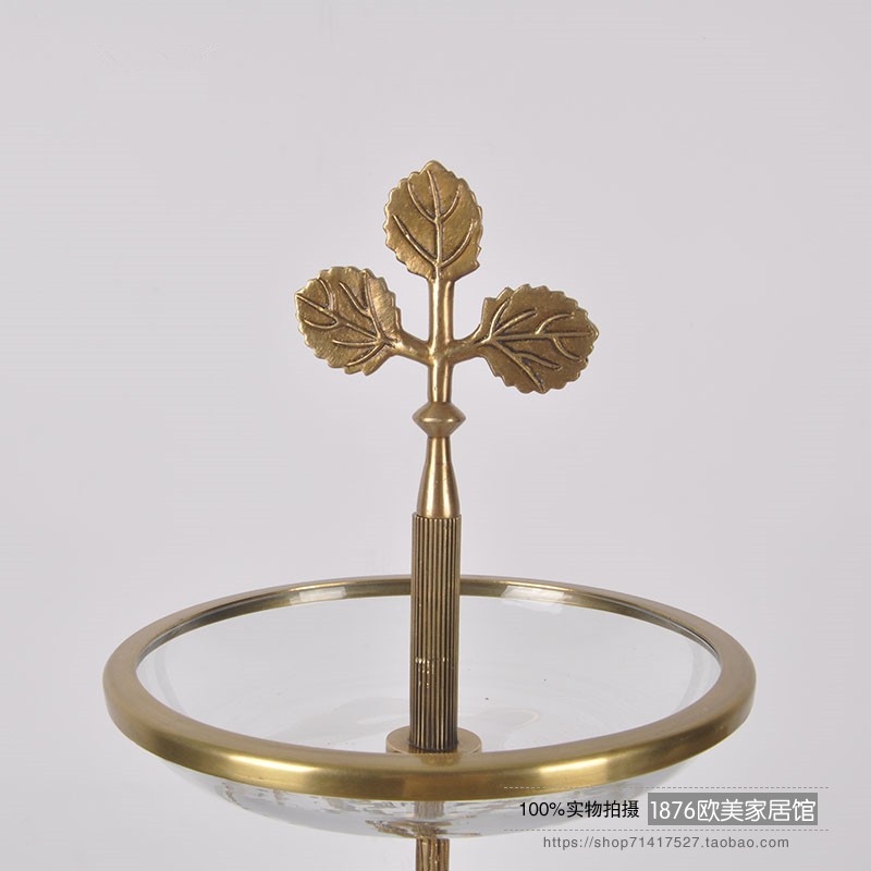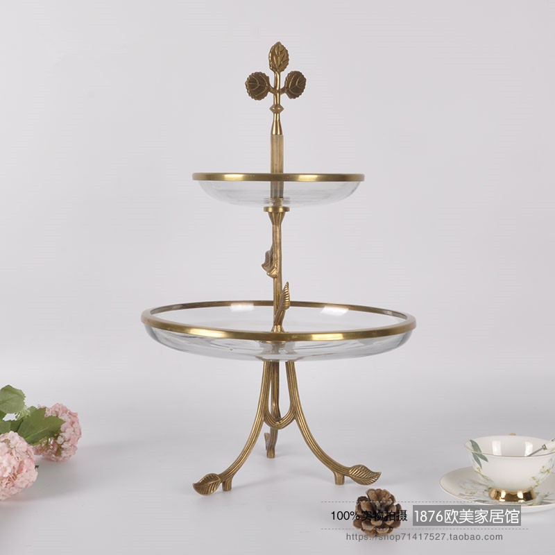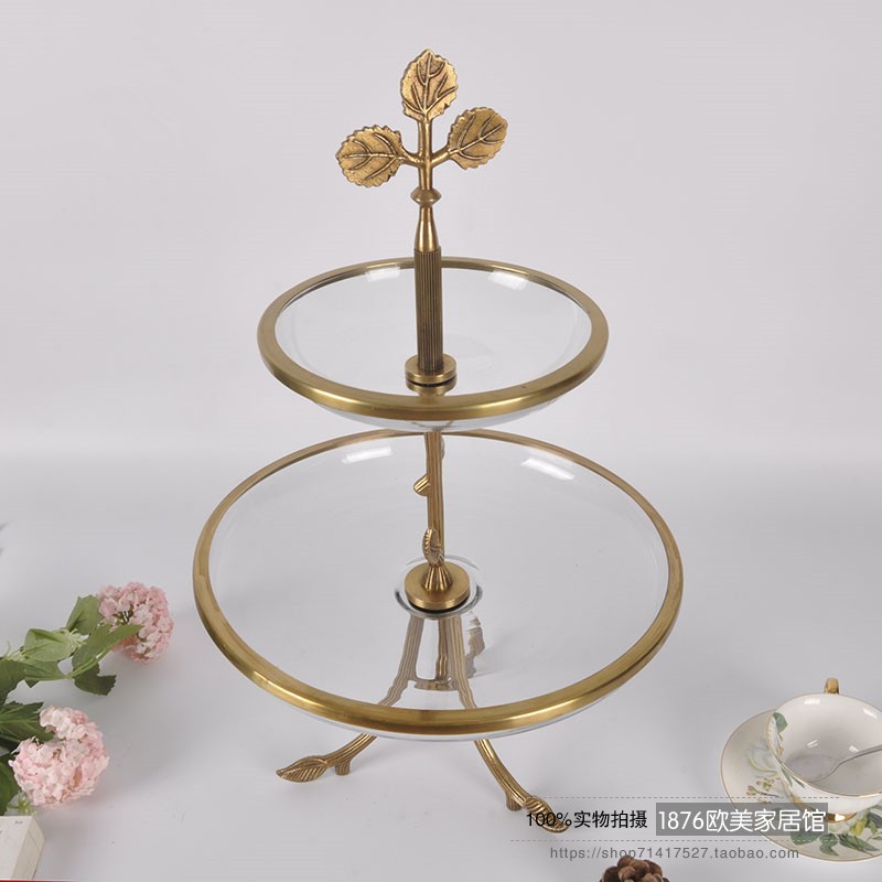 純銅玻璃雙層果盤 北歐美式桌面擺設樣板間高檔裝飾擺件1入