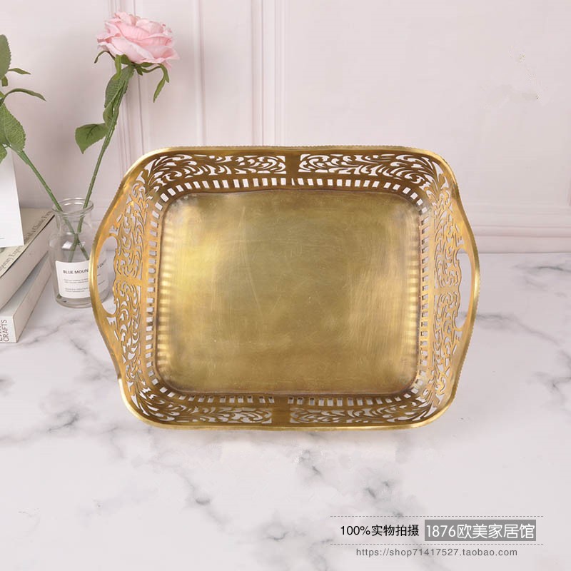 純銅手工鏤空雕花果盤雜物收納框樣板間高檔桌面裝飾擺件1入