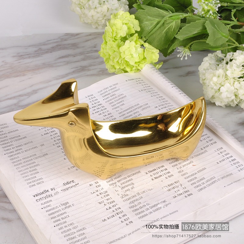 純銅黃銅筷子托 美式創意桌面飾品裝飾首飾道具收納擺件1入