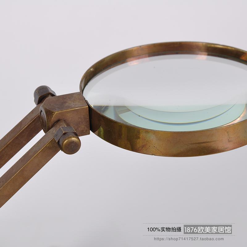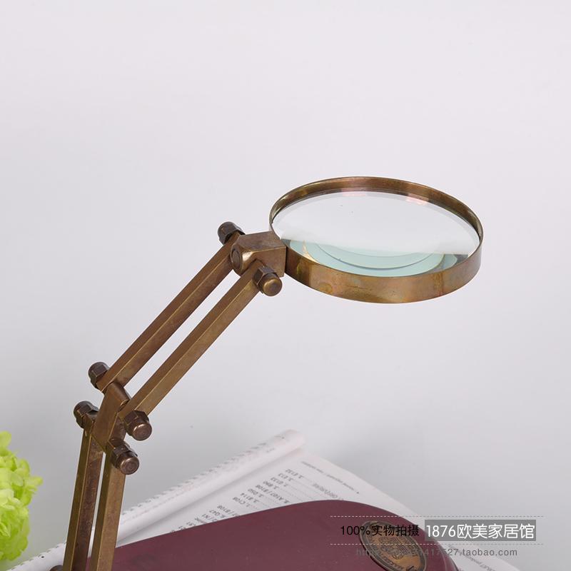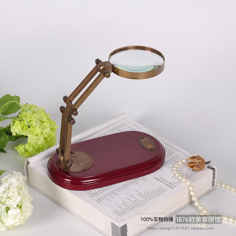 北歐美式純銅手工臺式放大鏡樣板間辦公室桌面裝飾擺件1入