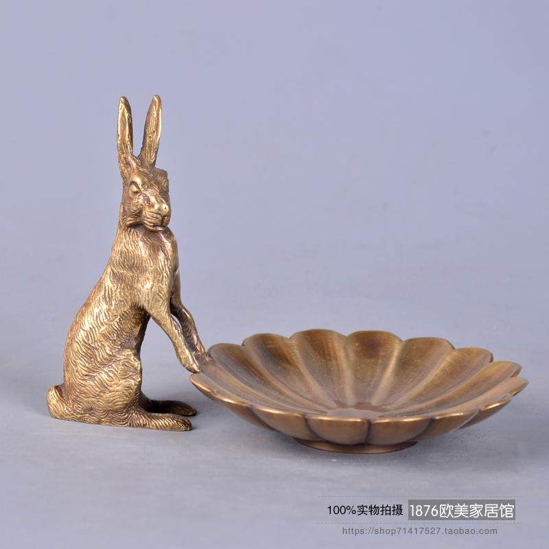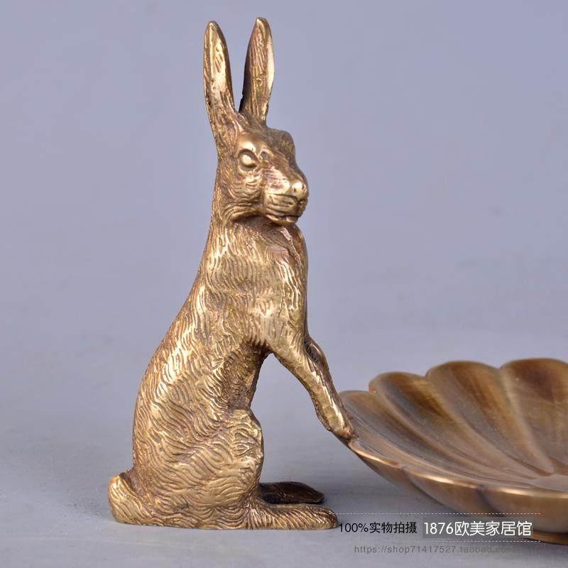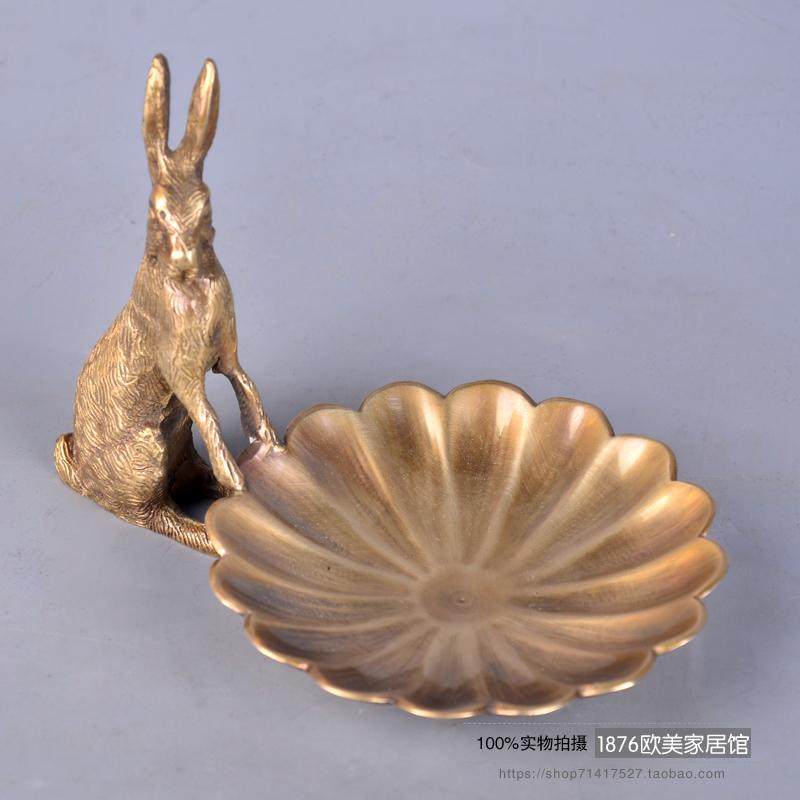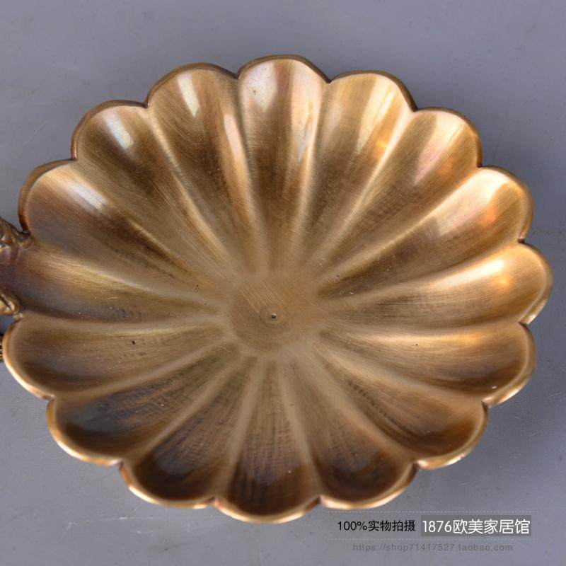 歐式美式手工黃銅小收納盤首飾碟戒指盤高端創意裝飾擺件1入