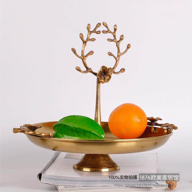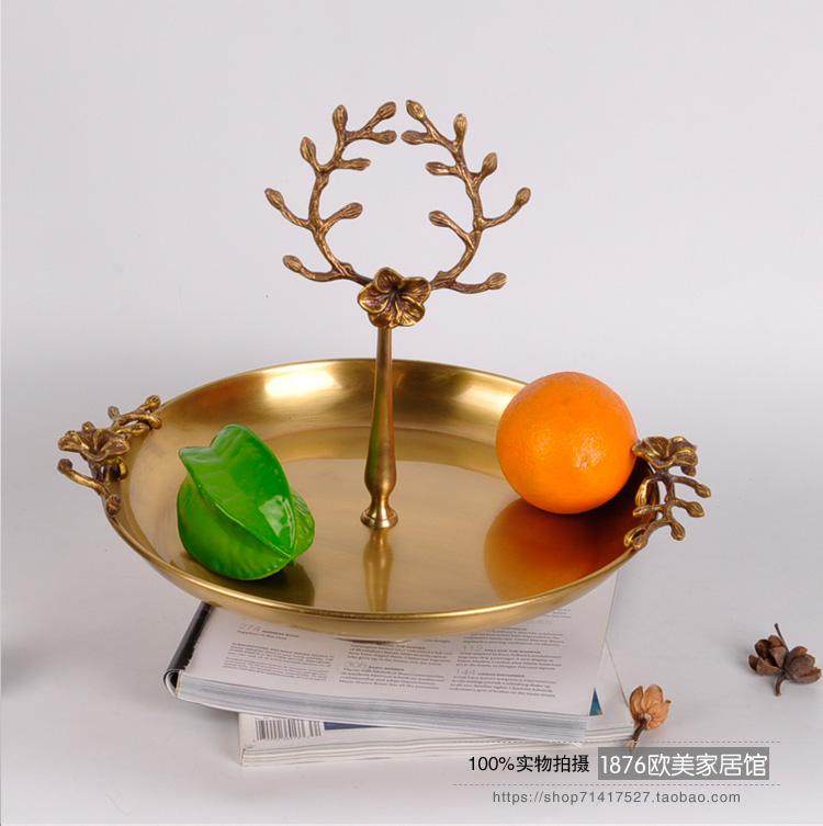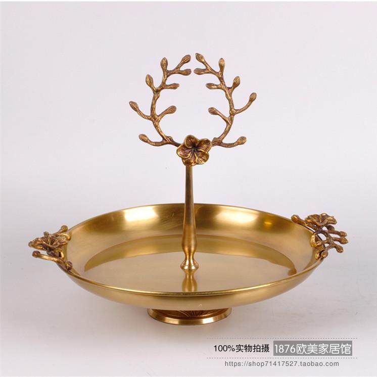 歐美式手工高檔純銅黃銅梅花托盤果盤收納裝飾盤家居擺件1入