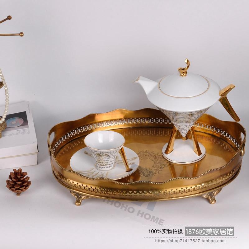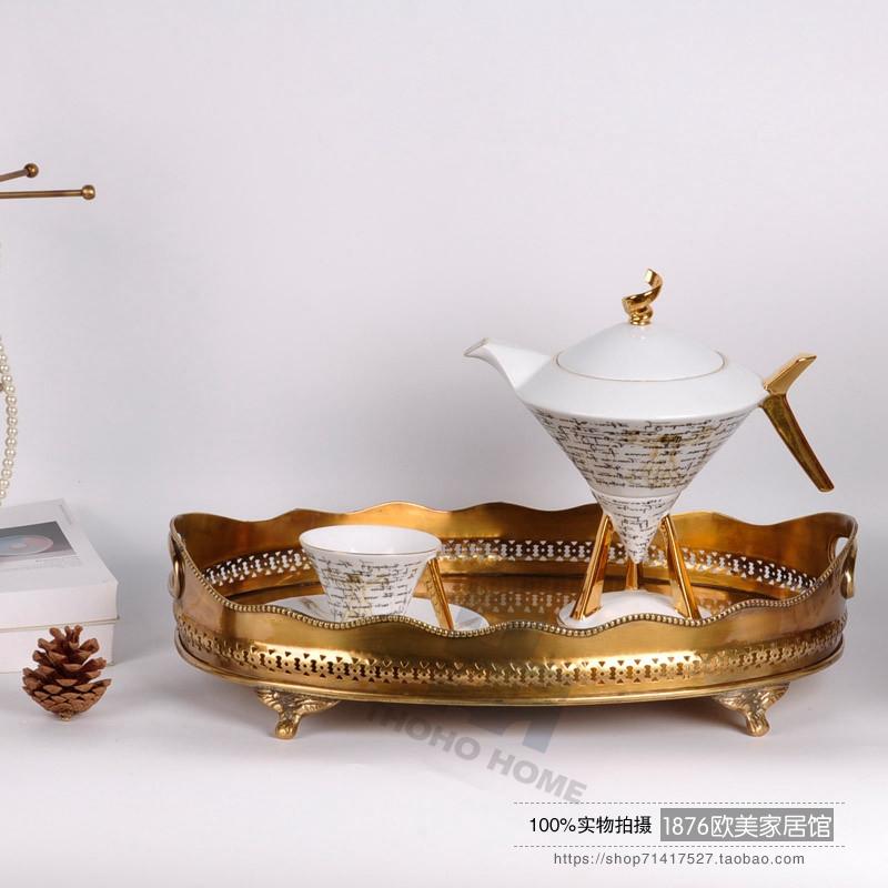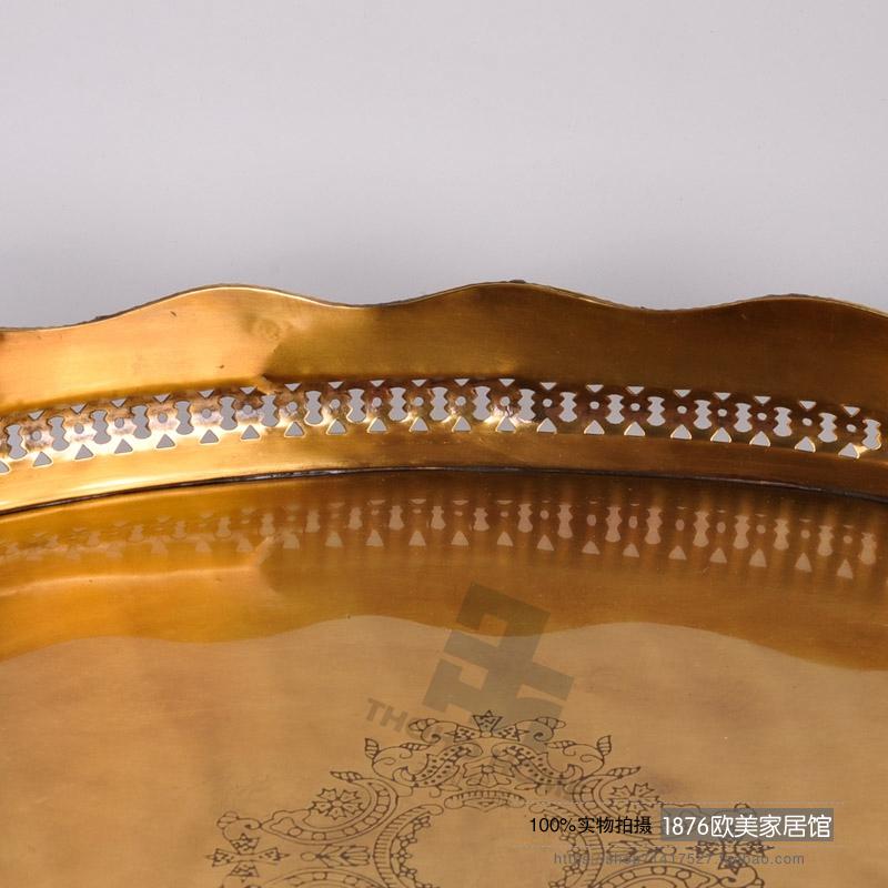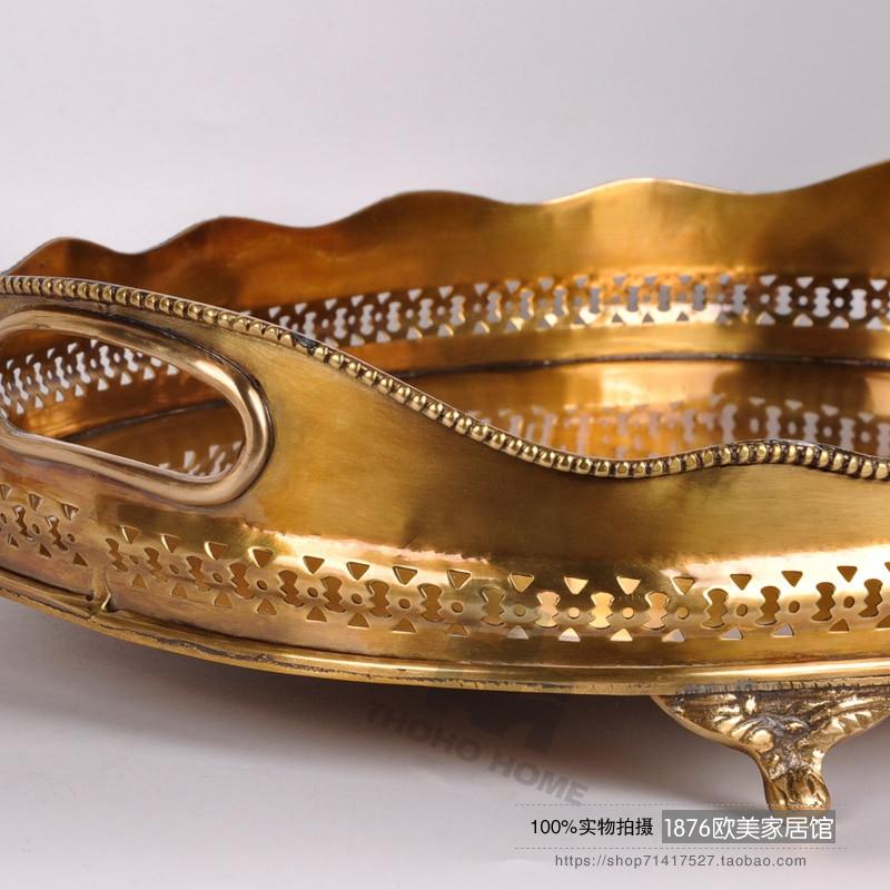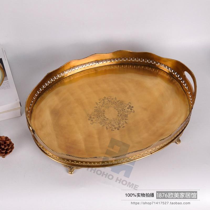 美式純銅鏤空雕花托盤茶盤果盤擺件酒店會所別墅軟裝擺件1入
