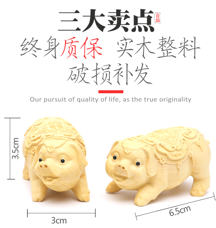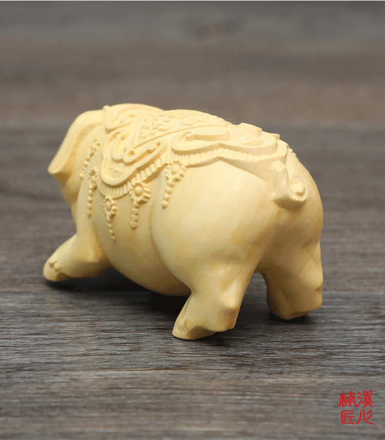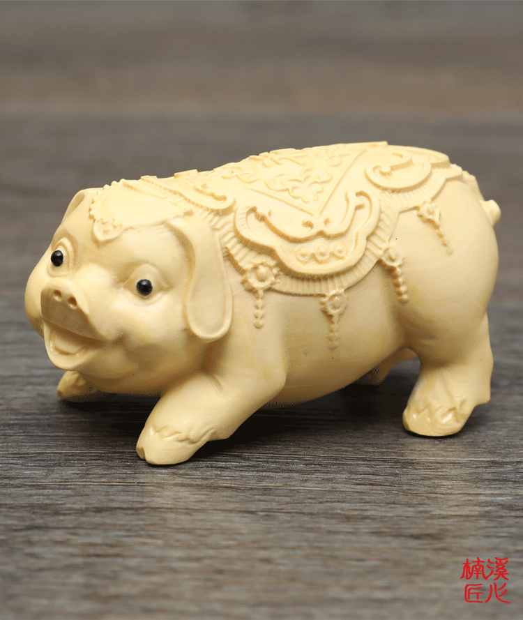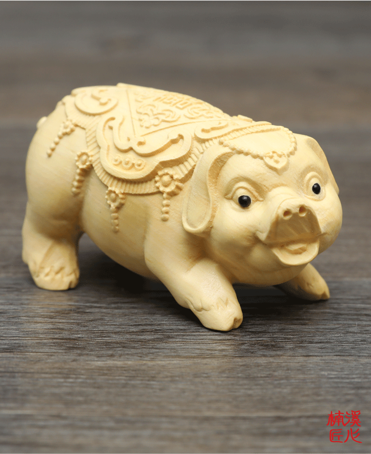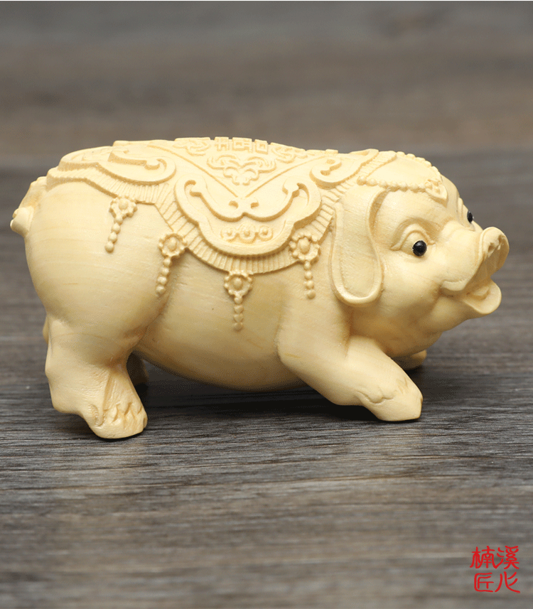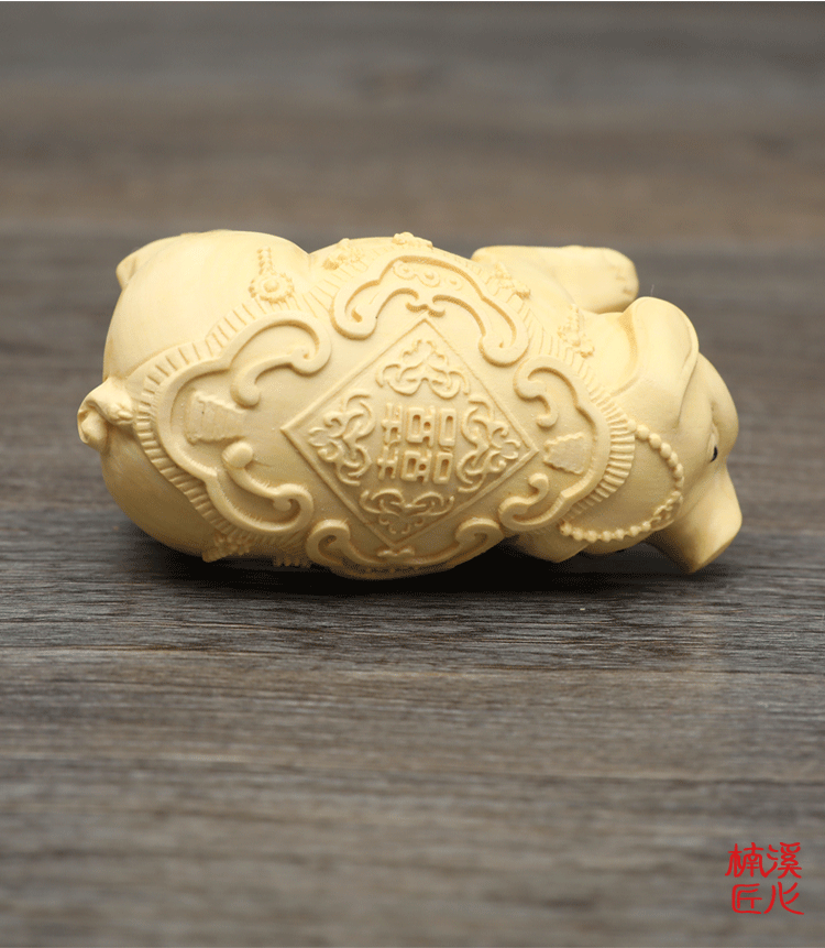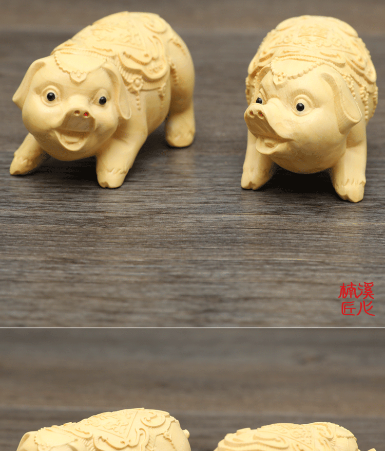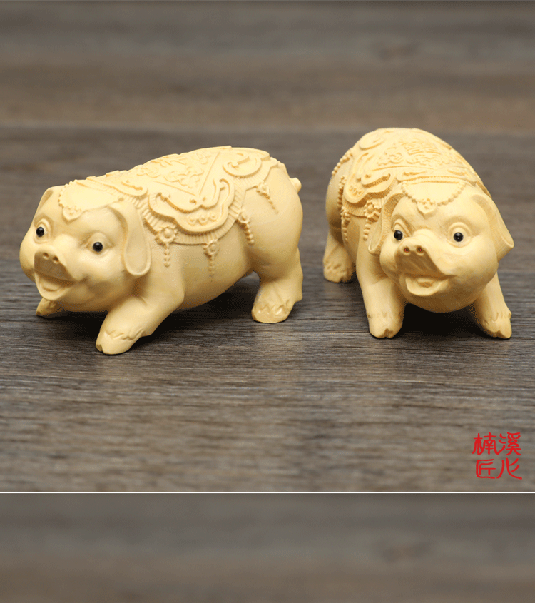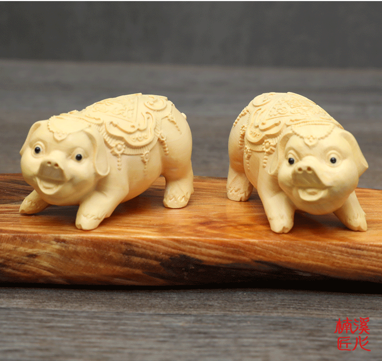 黃楊木雕動物小豬擺件手把件雕刻工藝禮品家居飾品木刻茶寵福氣豬1入