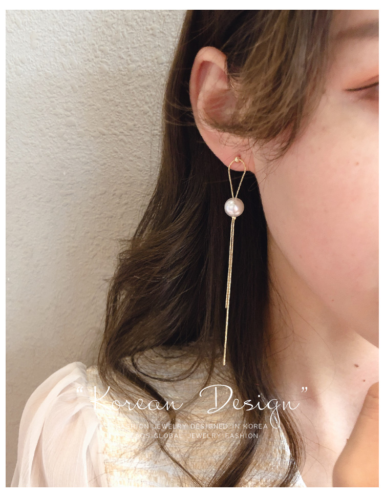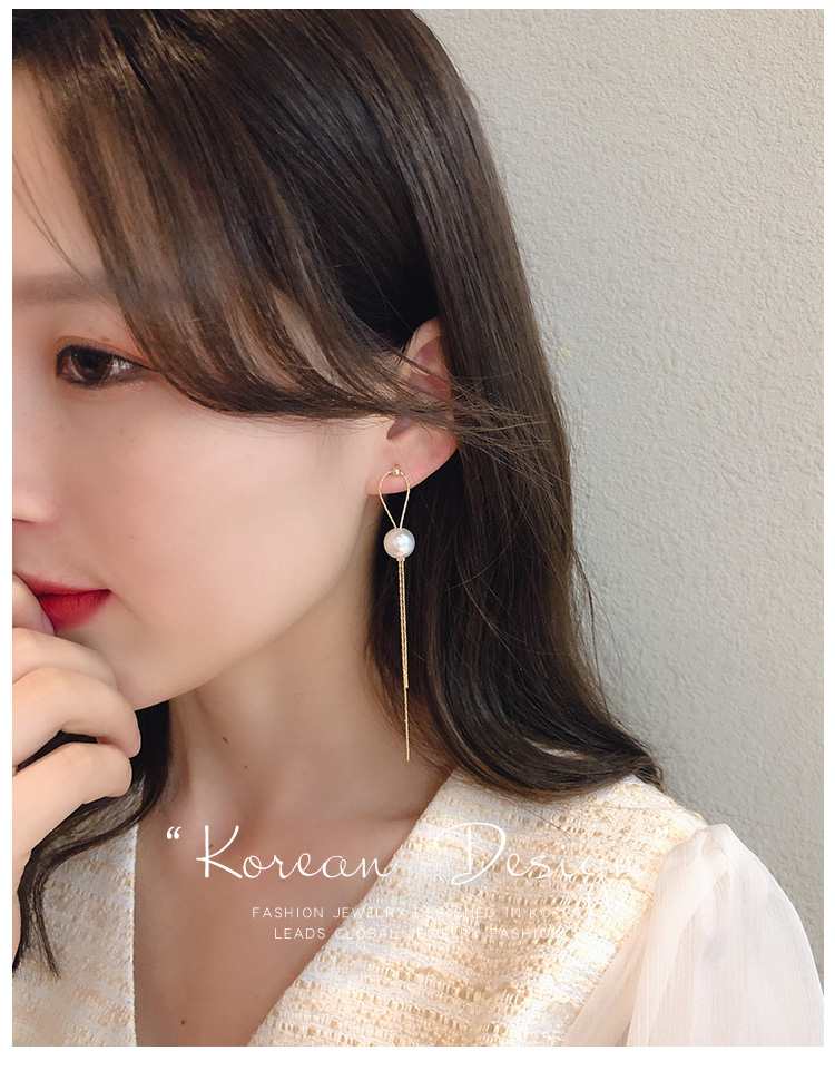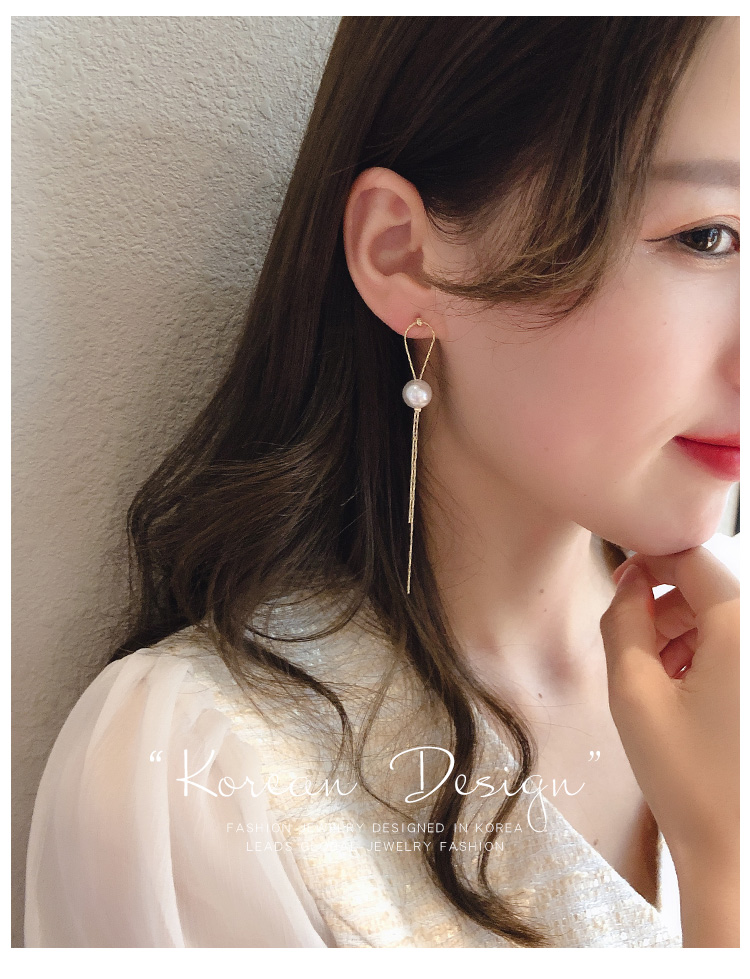 顯臉瘦的耳線2019新款潮名媛氣質韓國東大門珍珠耳墜長款流蘇耳環1入
