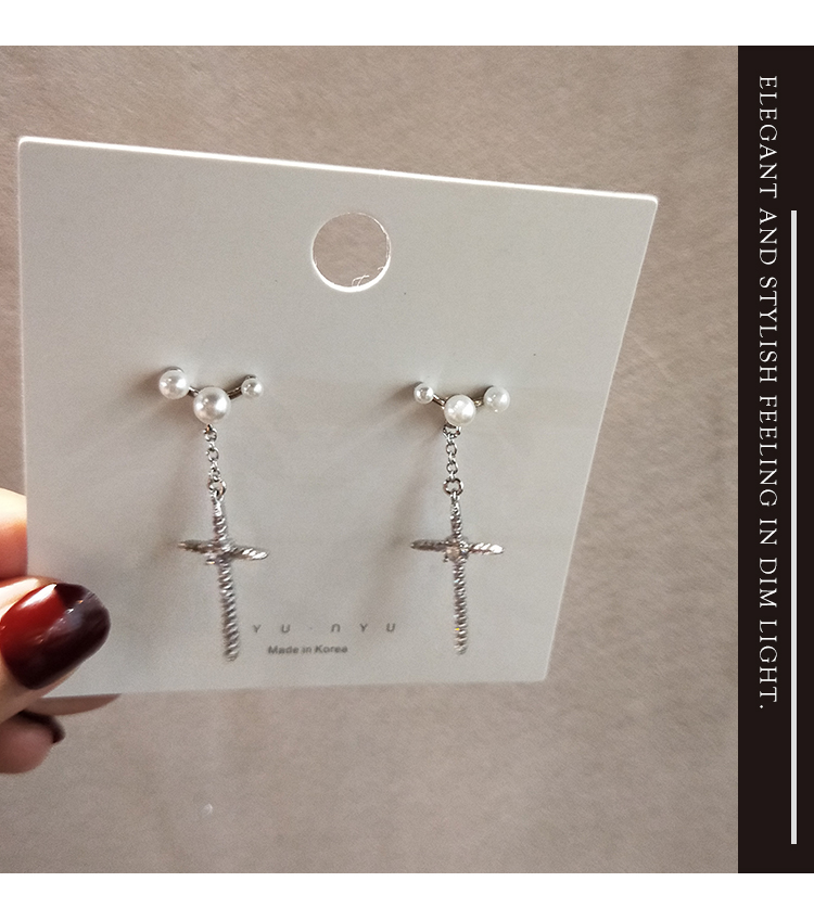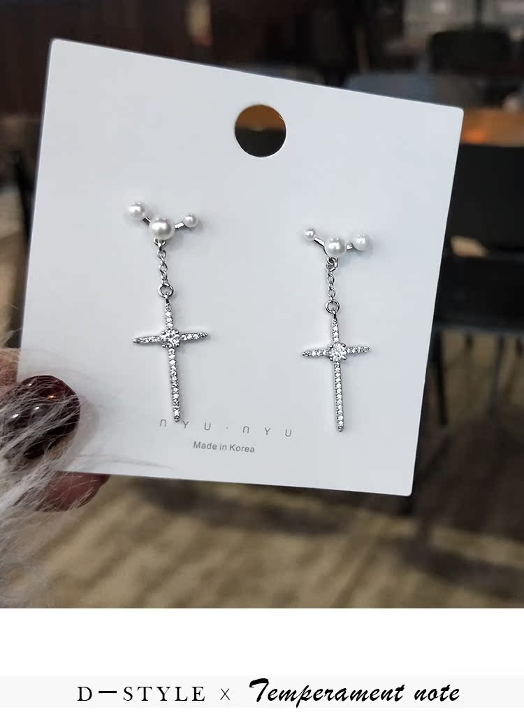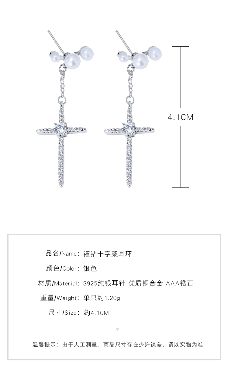 高級感耳環小眾法式優雅氣質韓國個性簡約百搭滿鉆十字架網紅耳墜1入