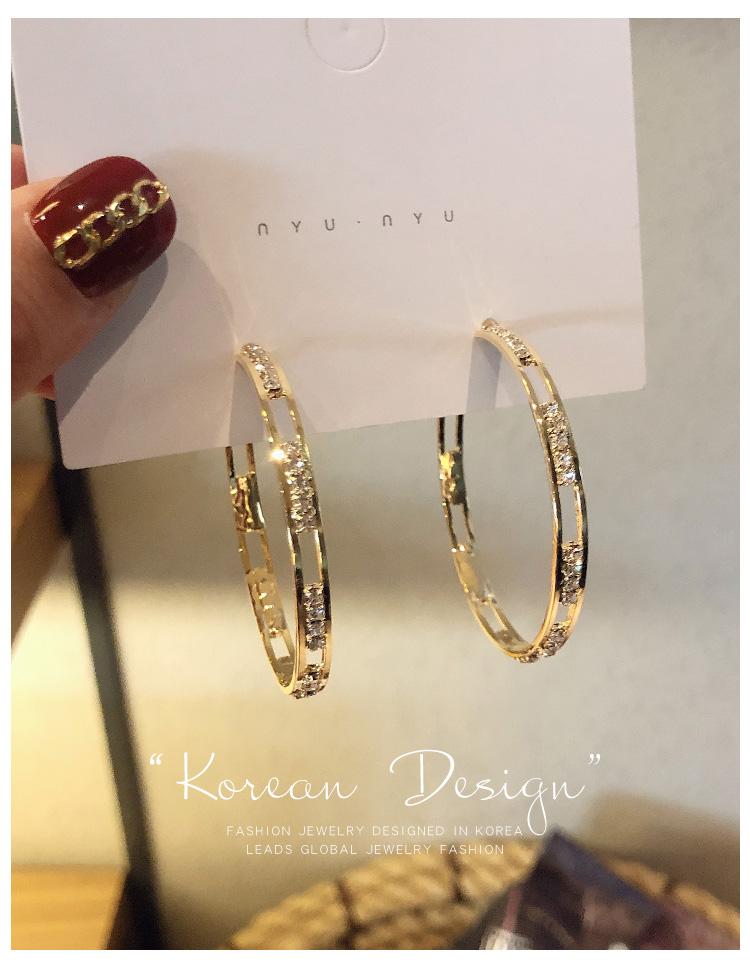高級感金屬耳圈精致超閃微鑲鋯石網紅耳飾2019新款潮輕奢時尚耳環1入