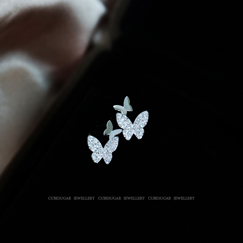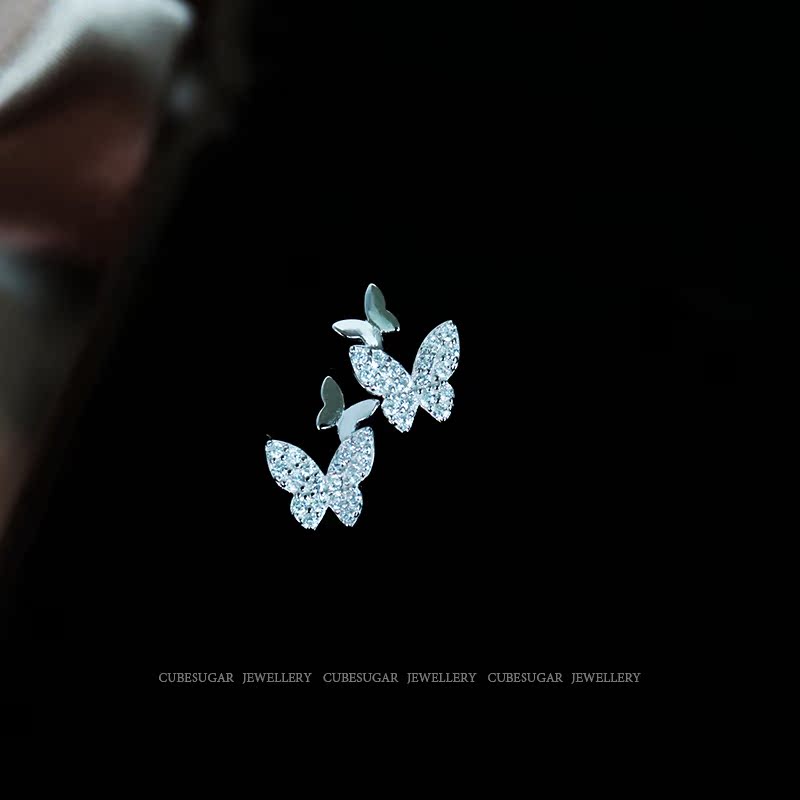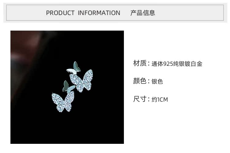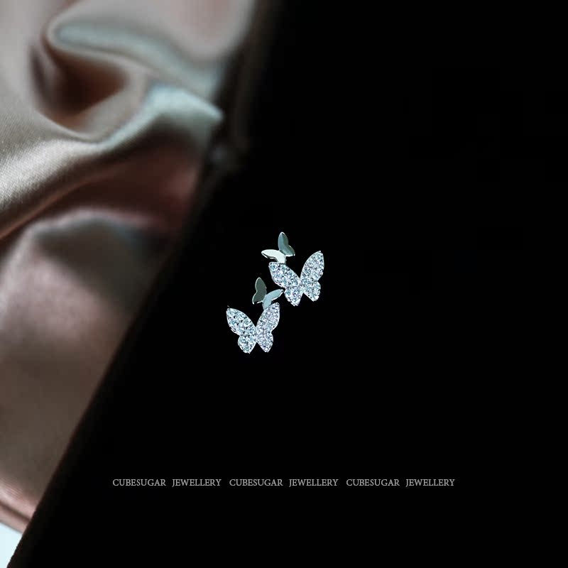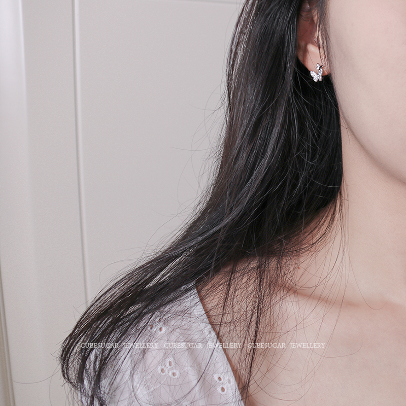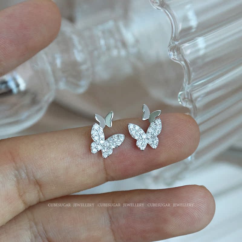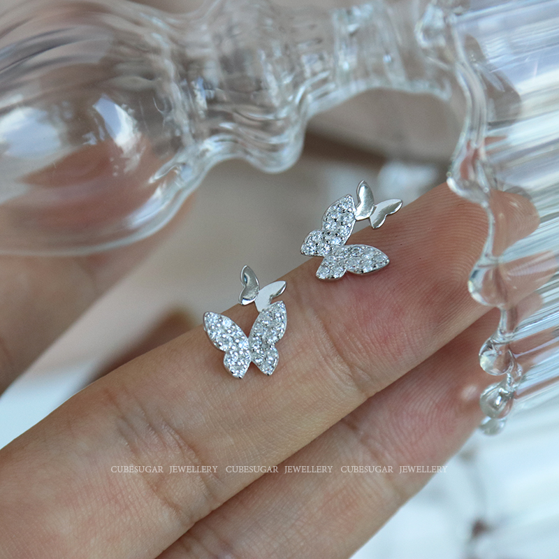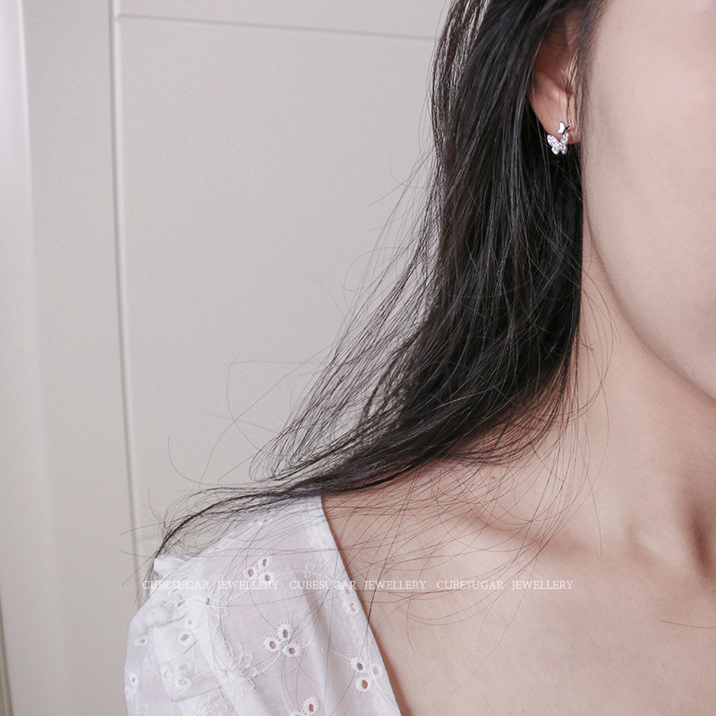 通體925純銀鑲鉆搖曳蝴蝶鋯石耳釘小巧精致溫柔氣質可愛迷你耳環1入