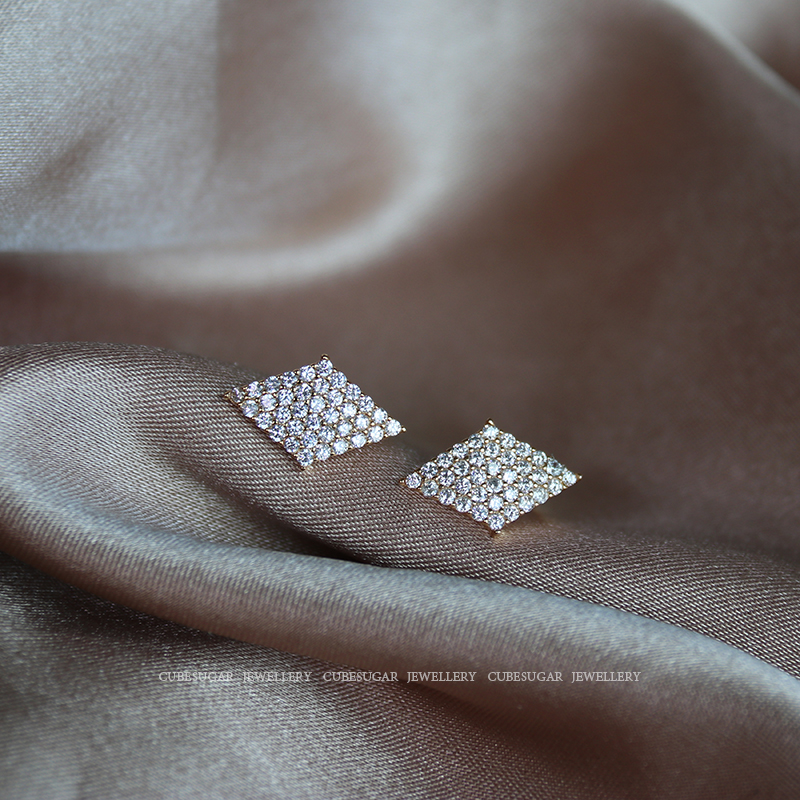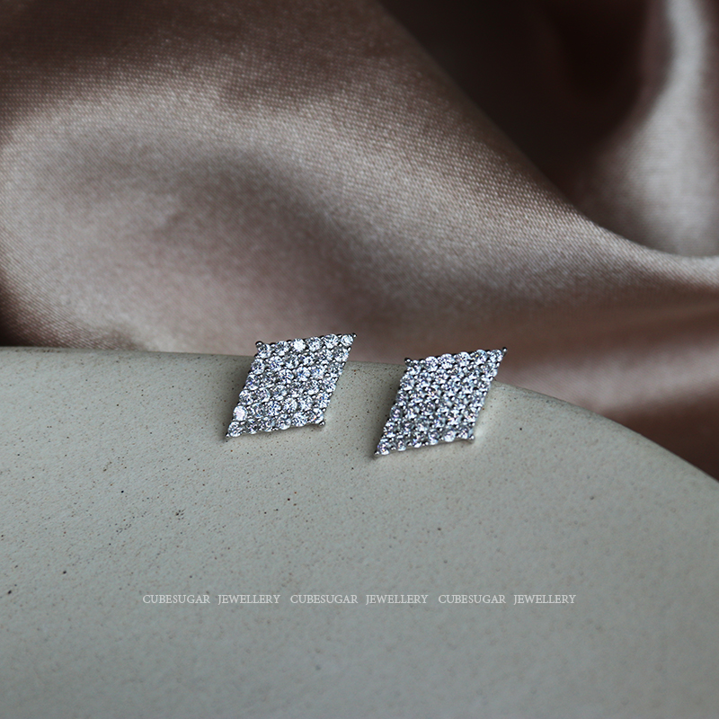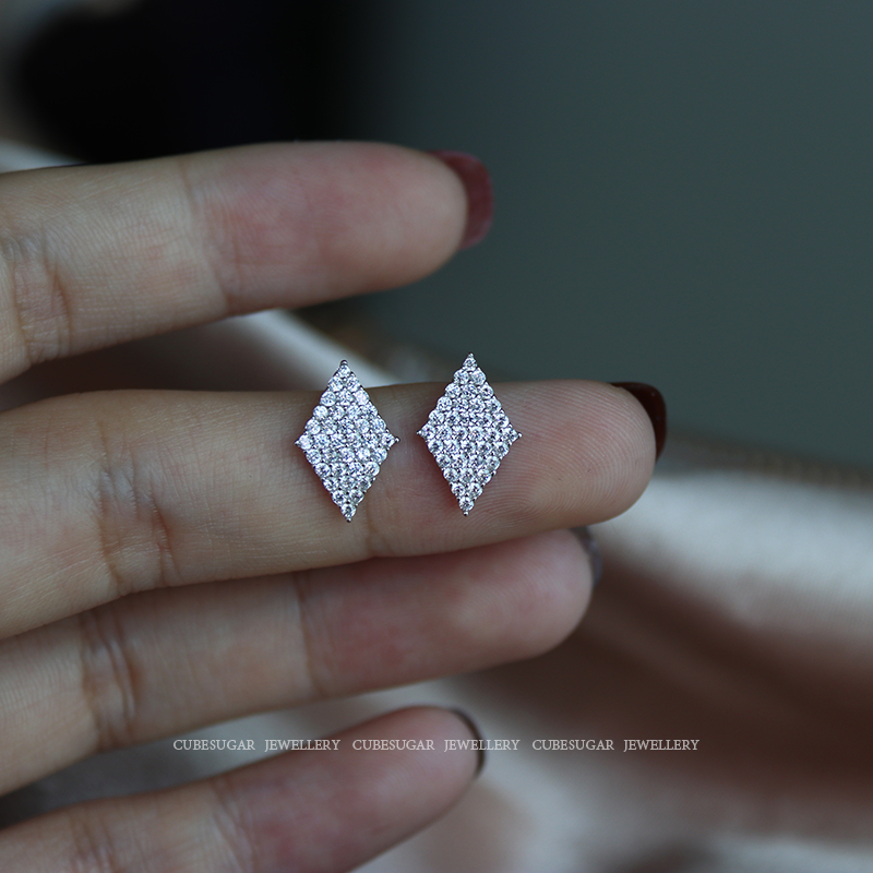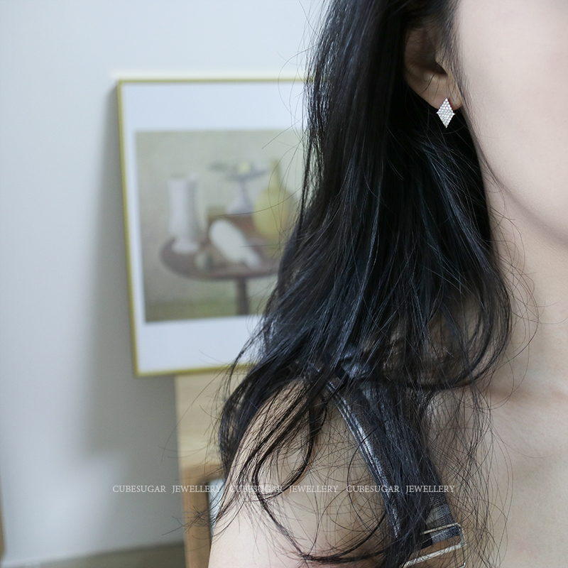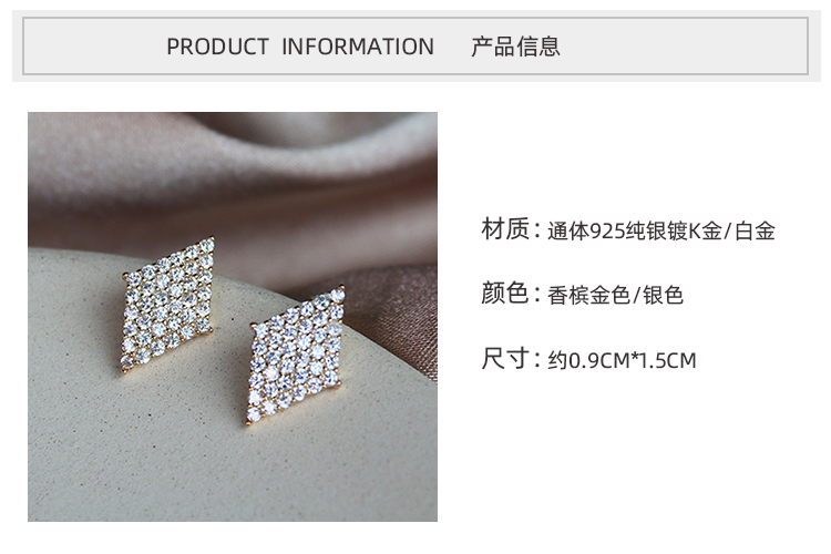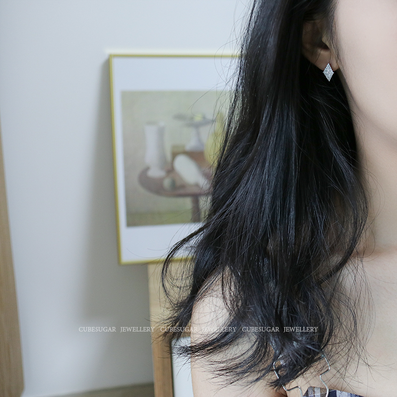 通體925純銀弧面鑲鉆菱形耳釘精致氣質簡約鋯石高級感小巧耳環女1入