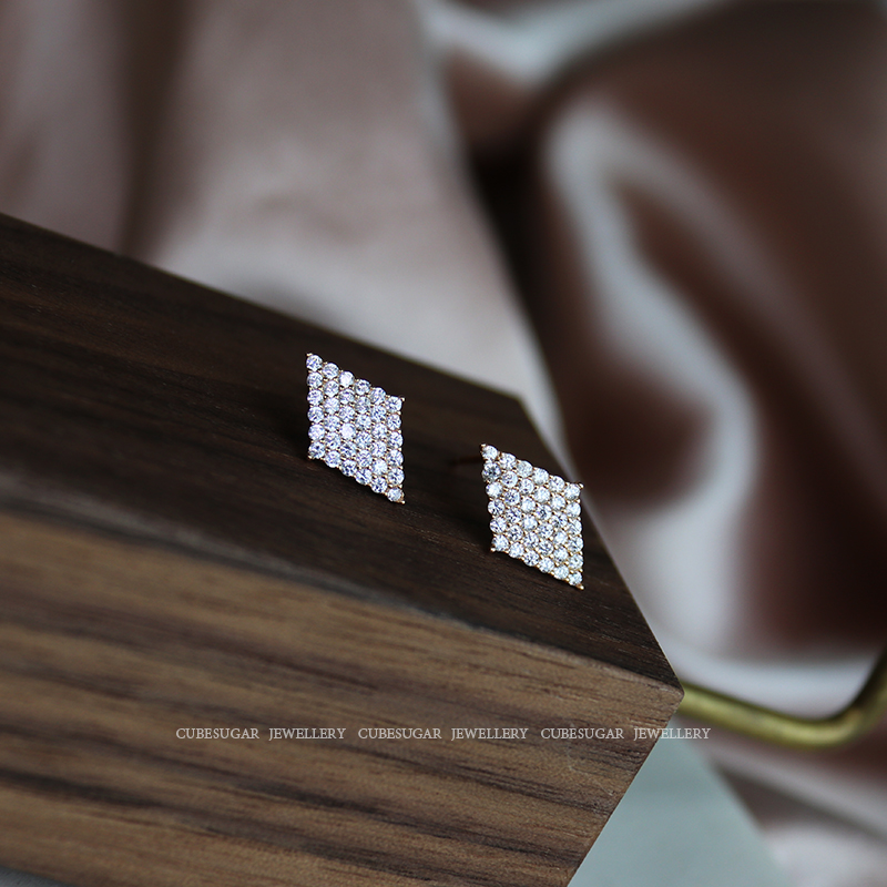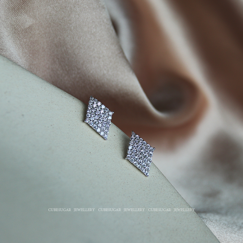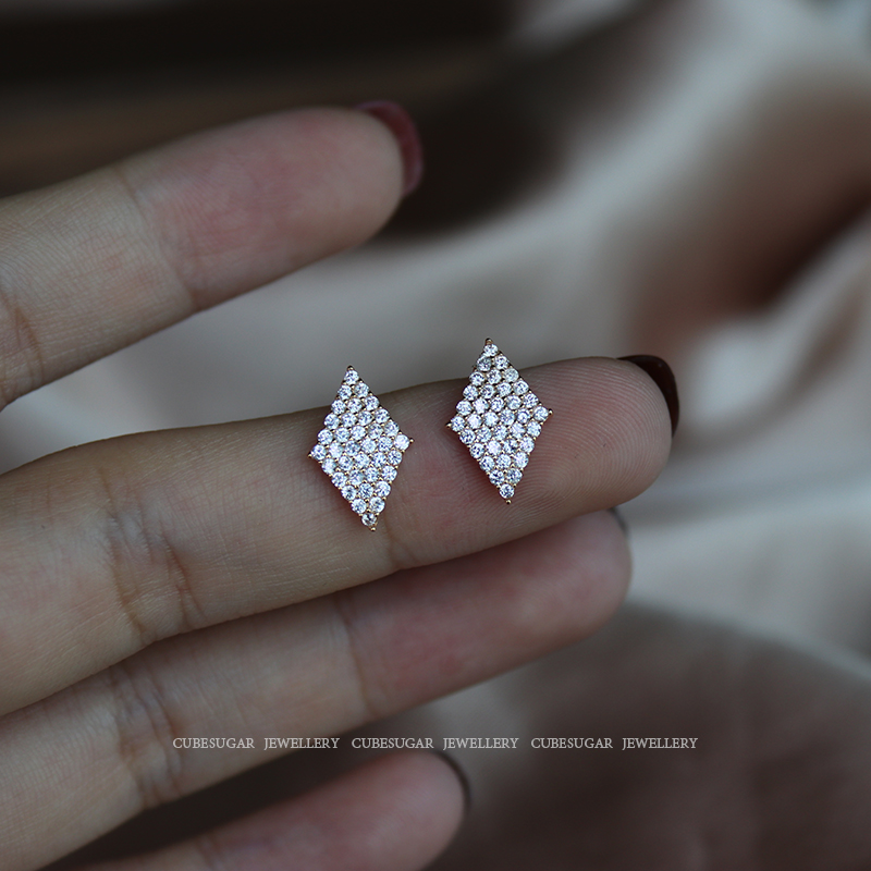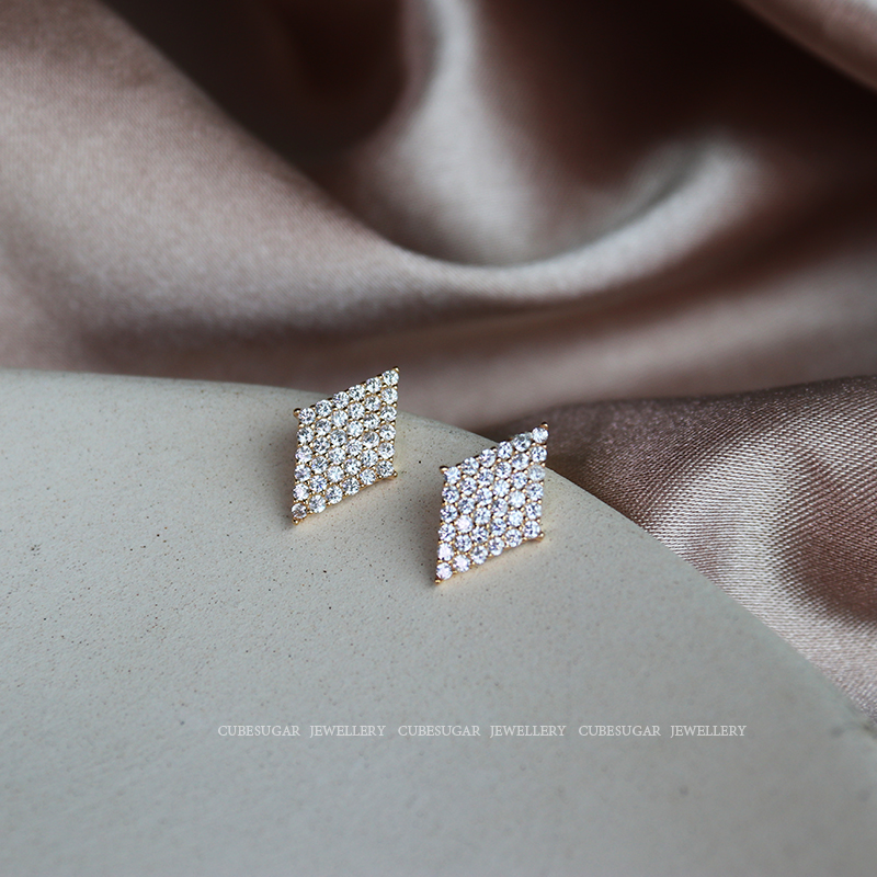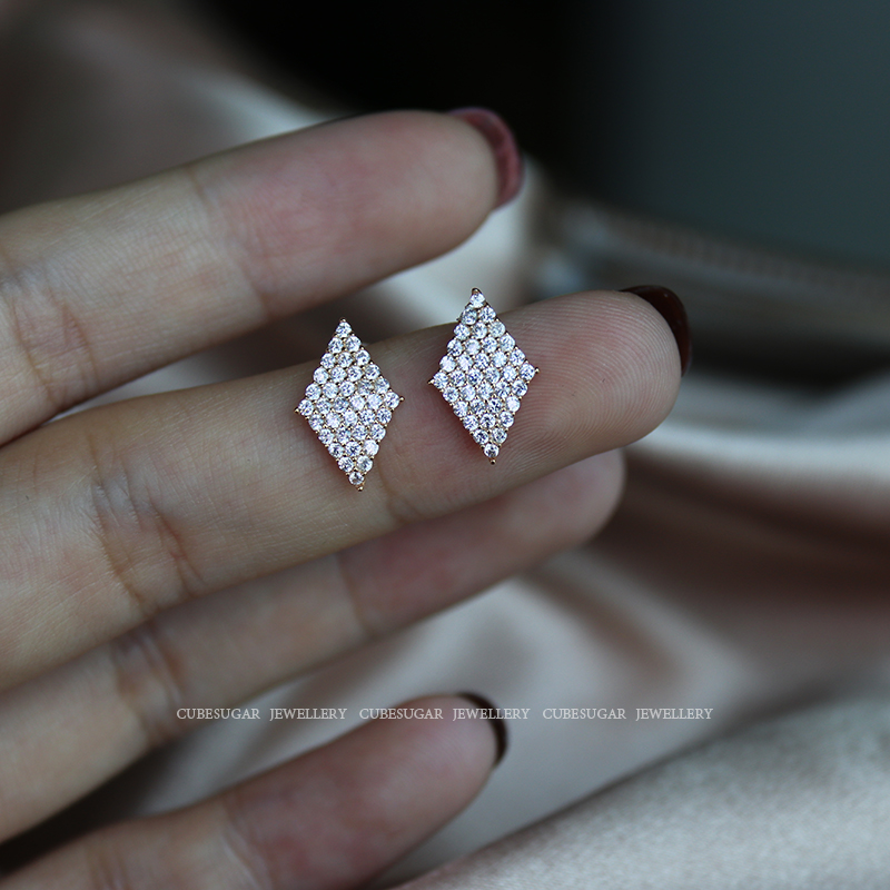 通體925純銀弧面鑲鉆菱形耳釘精致氣質簡約鋯石高級感小巧耳環女1入