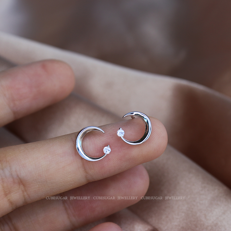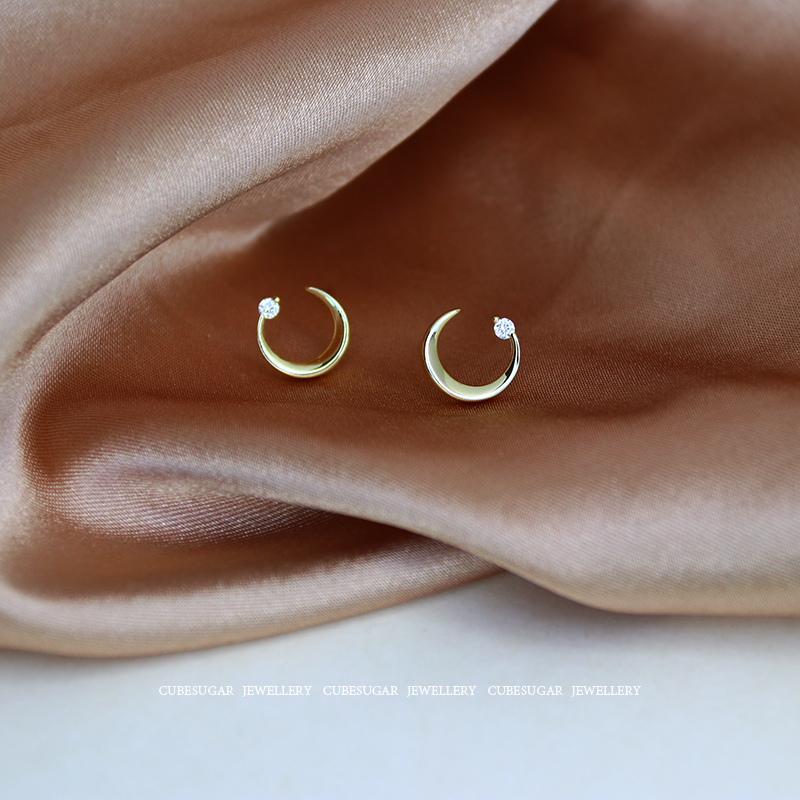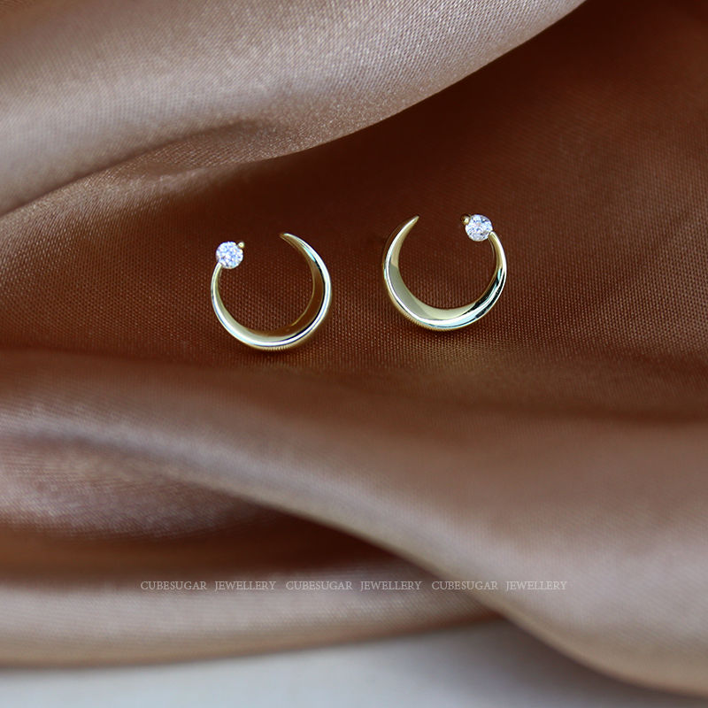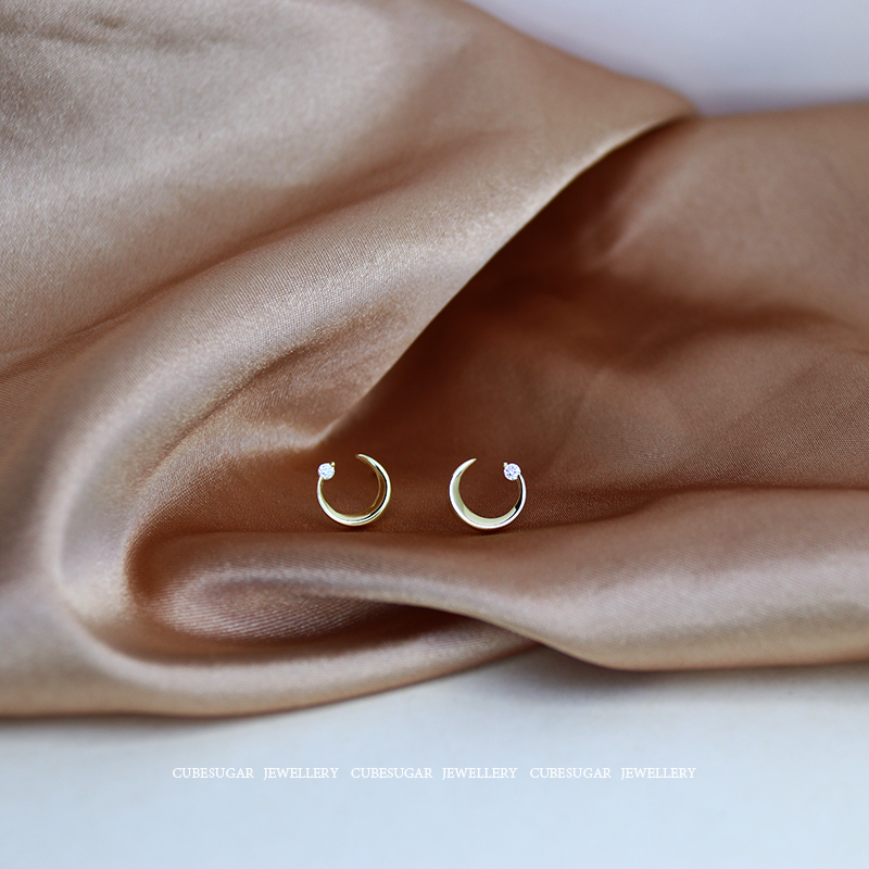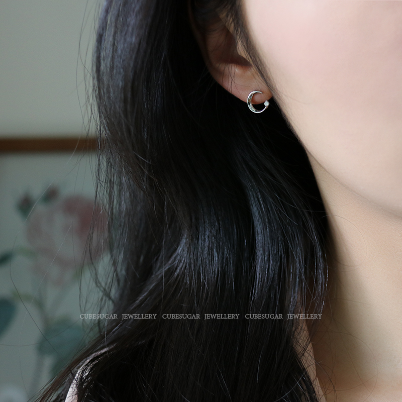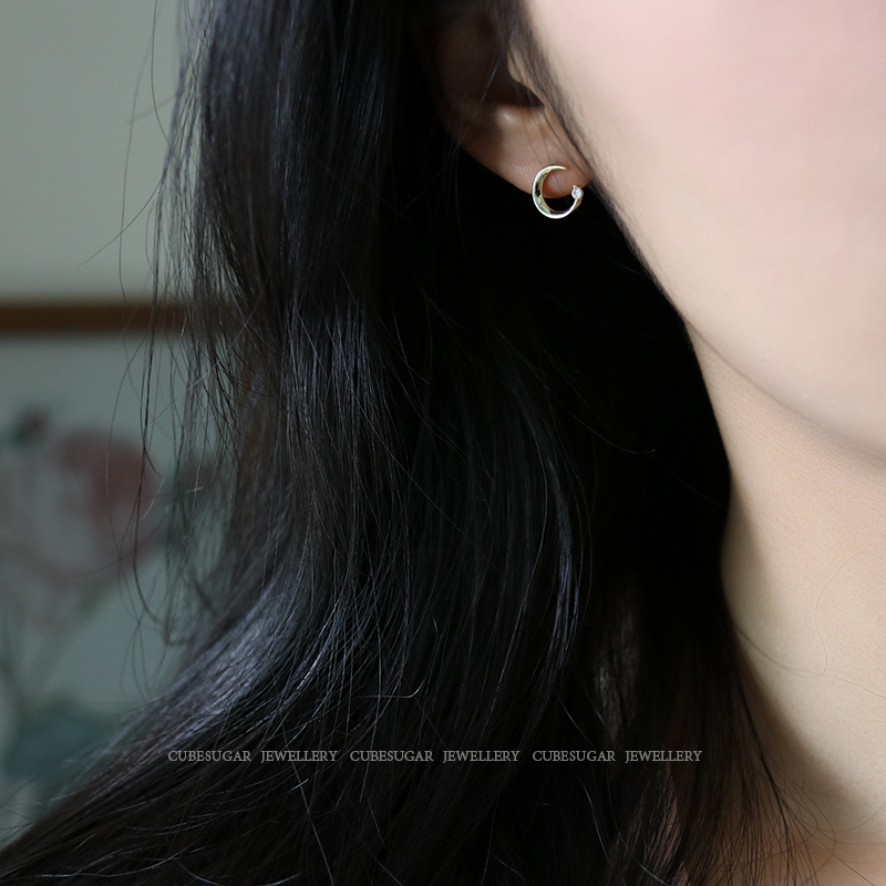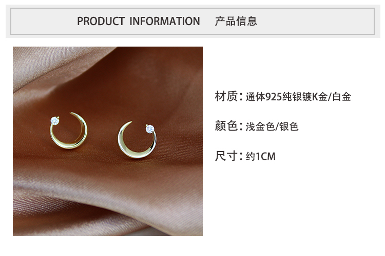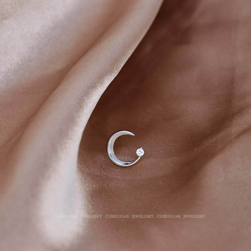 通體925純銀月亮耳環少女百搭小巧個性網紅精致小耳垂適合的耳釘1入
